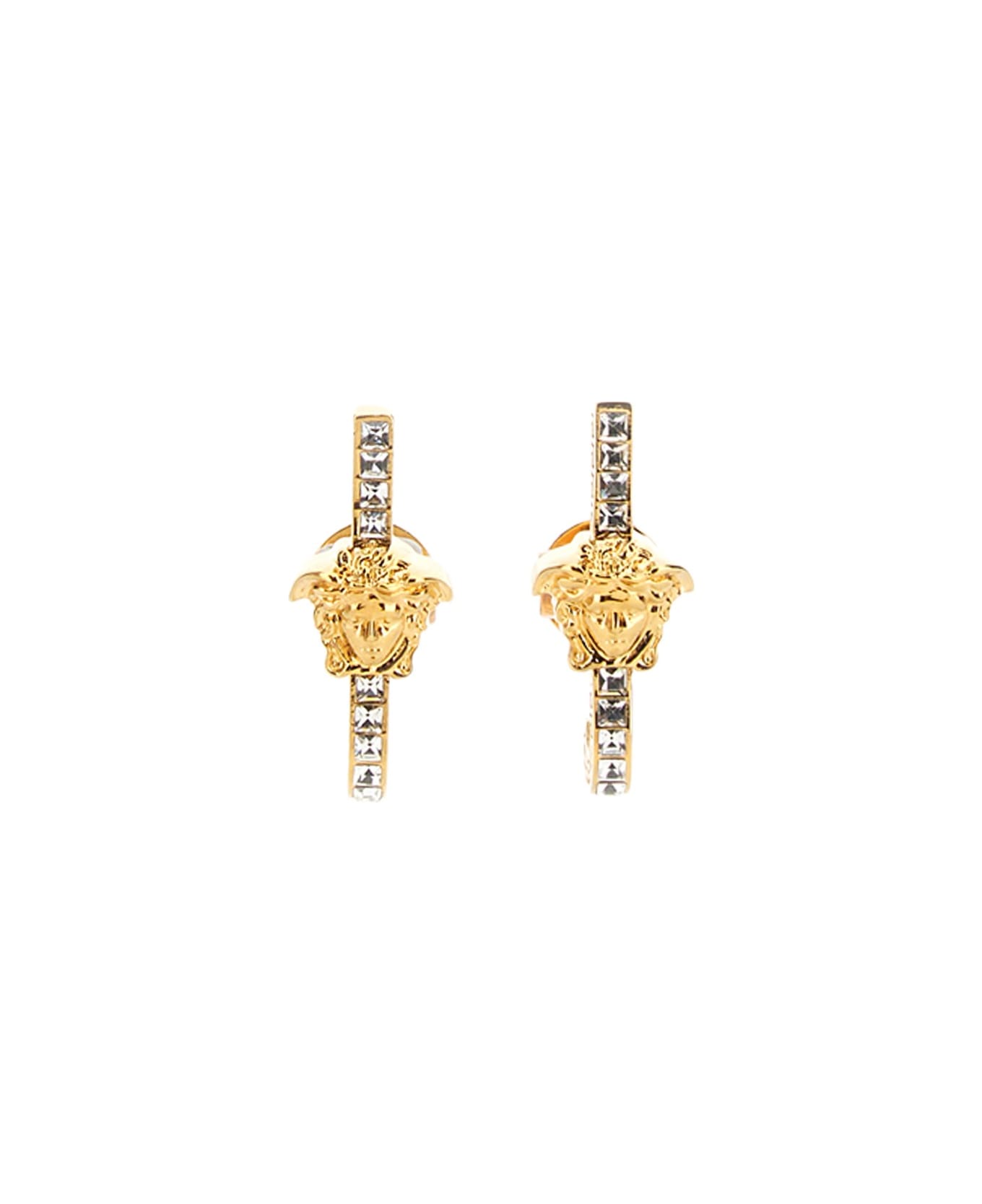 - For Pierced Ears- Rhinestone Detail- Medusa Logo- 100% Metal- Made In Italy