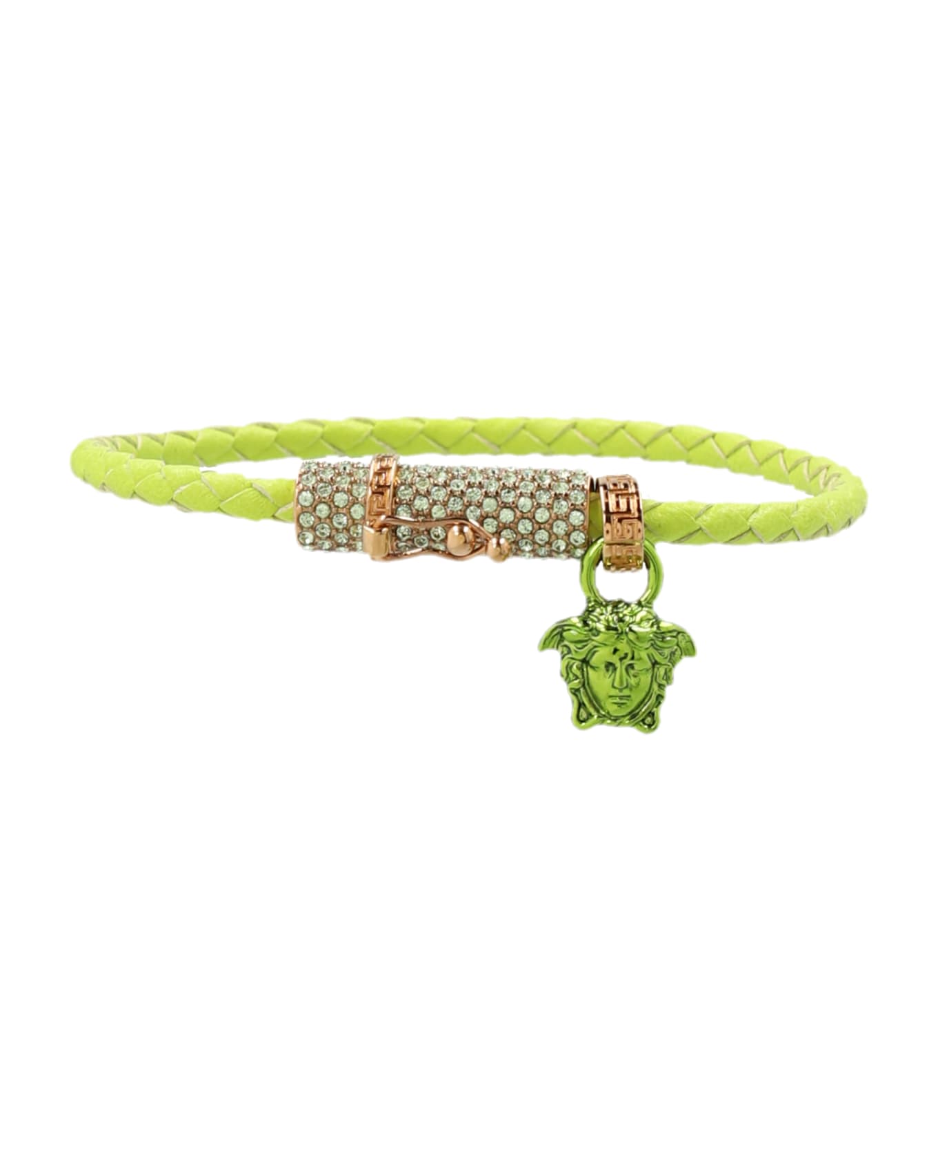 'Medusa' plaited leather bracelet with Medusa pendant and closure embellished with crystals. Composition: 100% metal