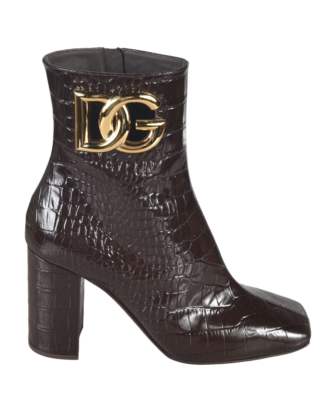 Dg Plaque Croco Embossed Side Zip Boots from Dolce & Gabbana