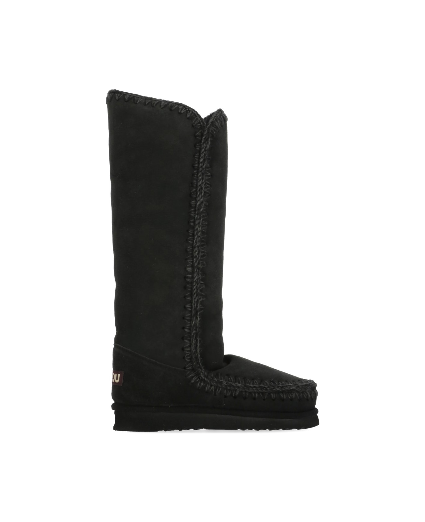 - Mou black sheepskin woman's boots - Round toe - Iconic wool crochet stitches - Rear loged patch - Rubber sole