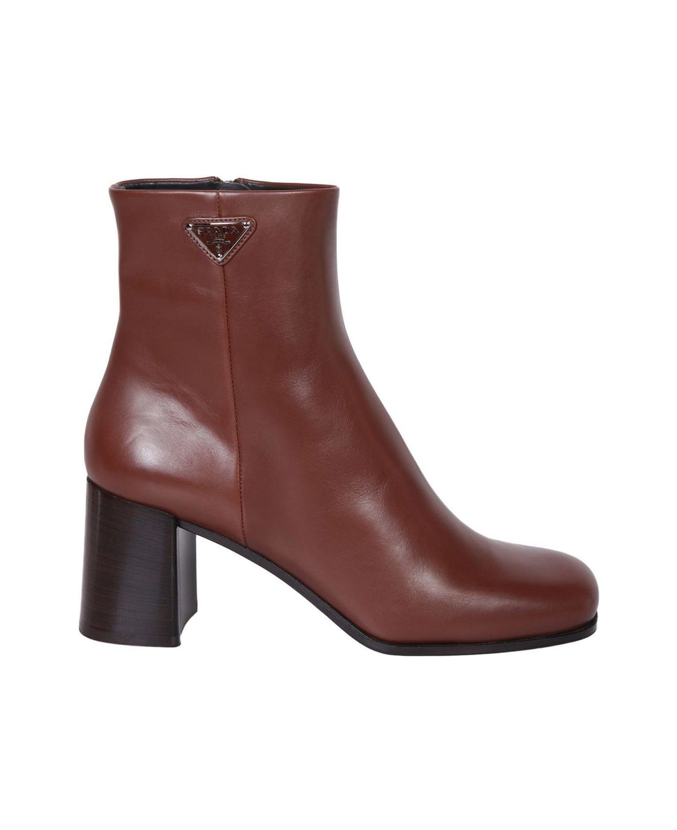 High Block Heel Logo Plaque Ankle Boots from Prada Composition: 100% Leather