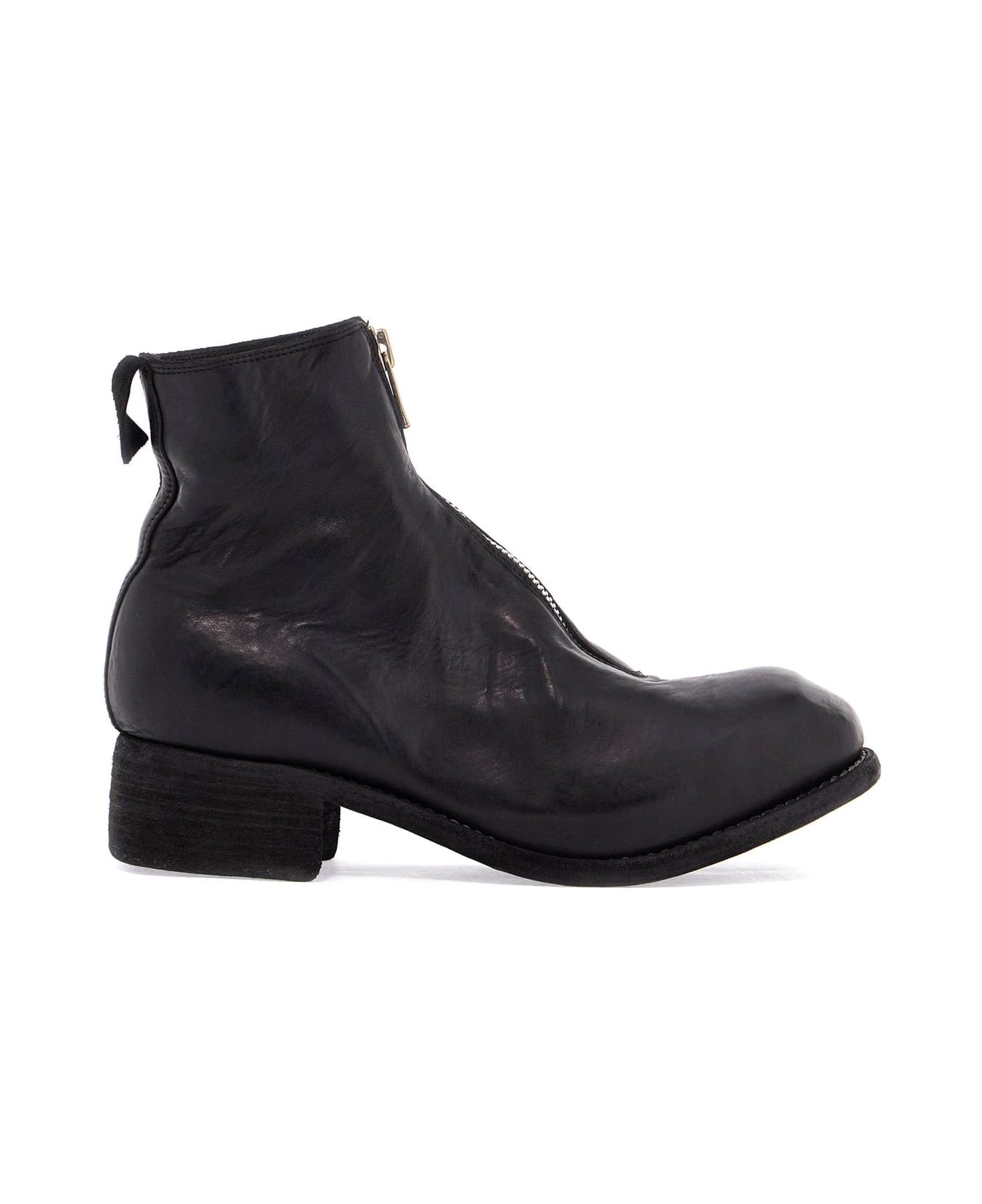 Unisex Leather Boots In Black Horse And Calfskin With Metal Zip