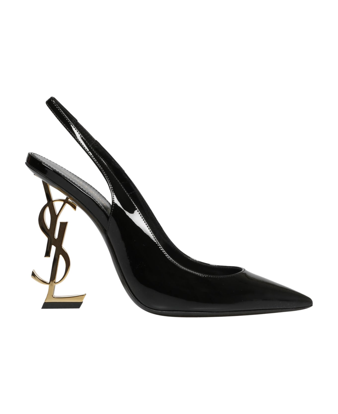 Saint Laurent Opyum slingback pumps, in patent leather decoraterd with structured heel with interlaced YSL initials. - Heel: 11 cm