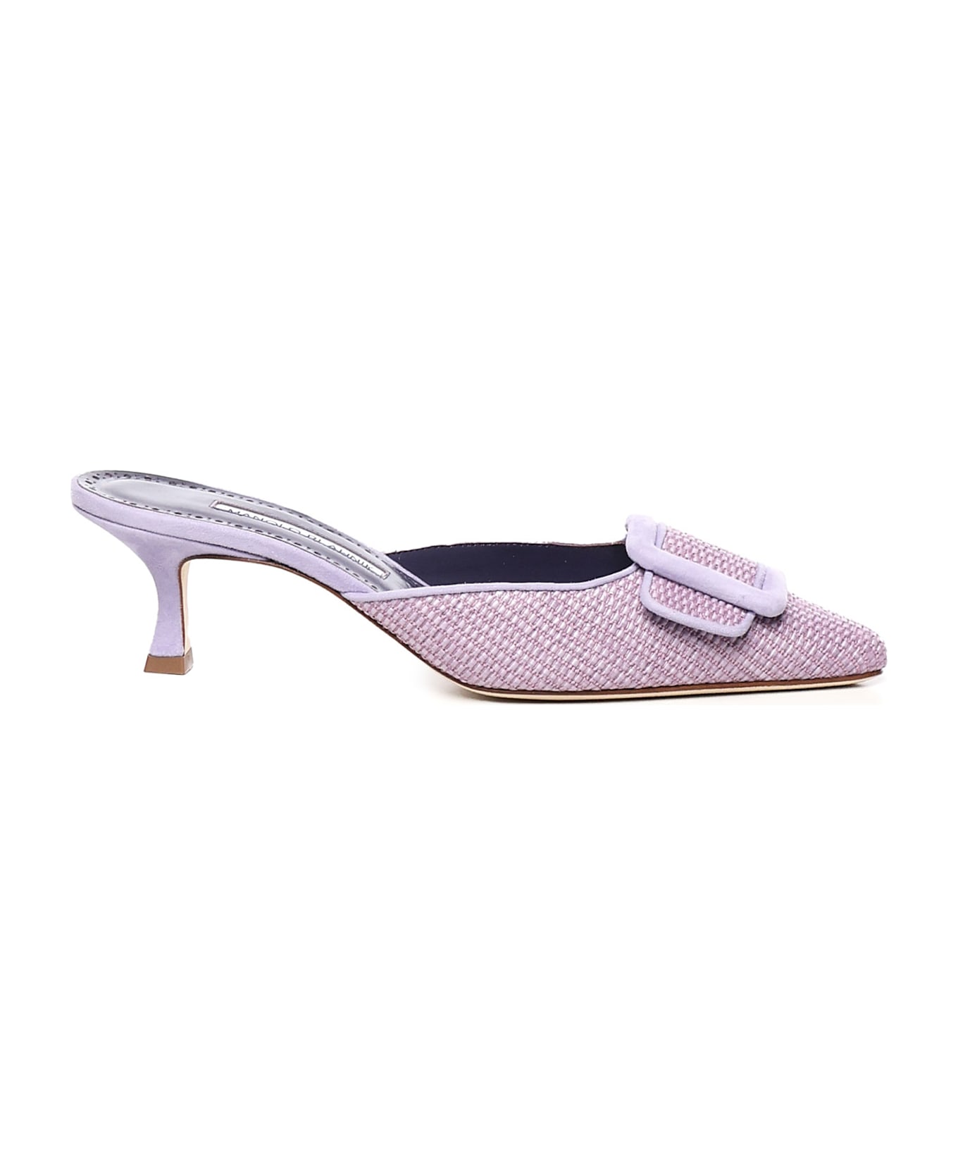 -Pointed raffia mules -Decorative suede buckle -Heel: 50 mm -Made in Italy -Color: Purple Composition: 98% Raffia, 2% Lambskin