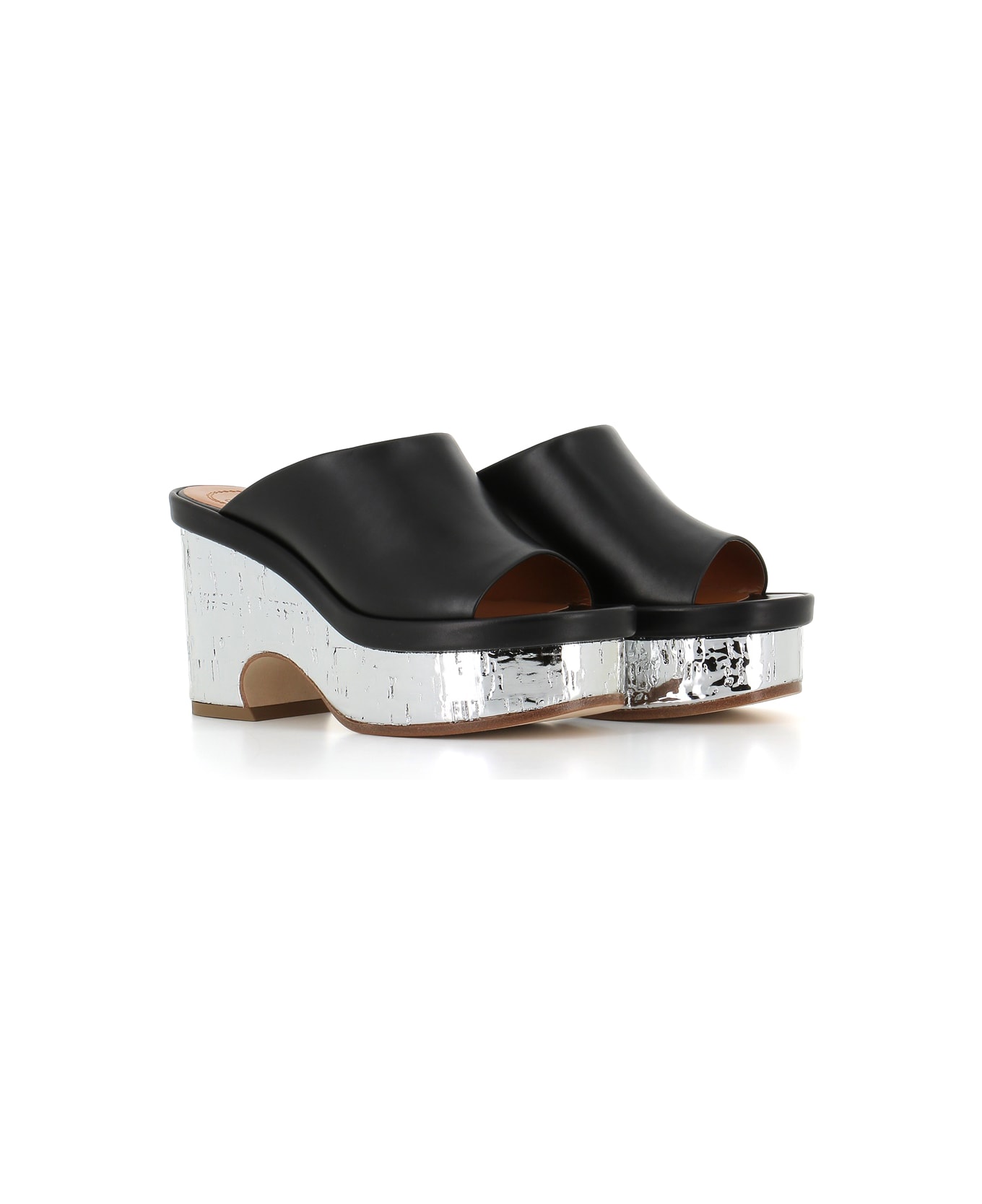 Black and silver leather wedge from Chloè, featuring by a sturdy platform sole in metallic cork and a high chunky heel. Leather sole. Heel: 10 cm Composition: Leather