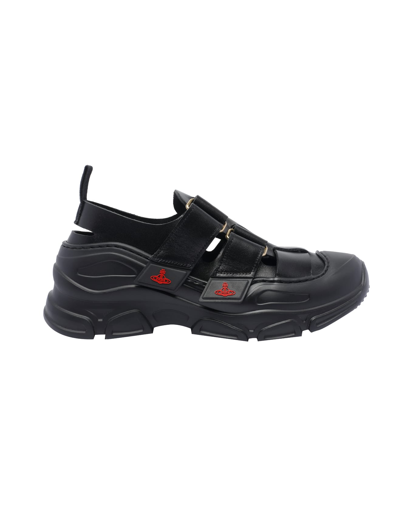 Vivienne Westwood black Catch Stomper sandals, round toe, lateral velcro closure, lateral logo, leather upper Composition: 100% Calf Leather/rubber Sole