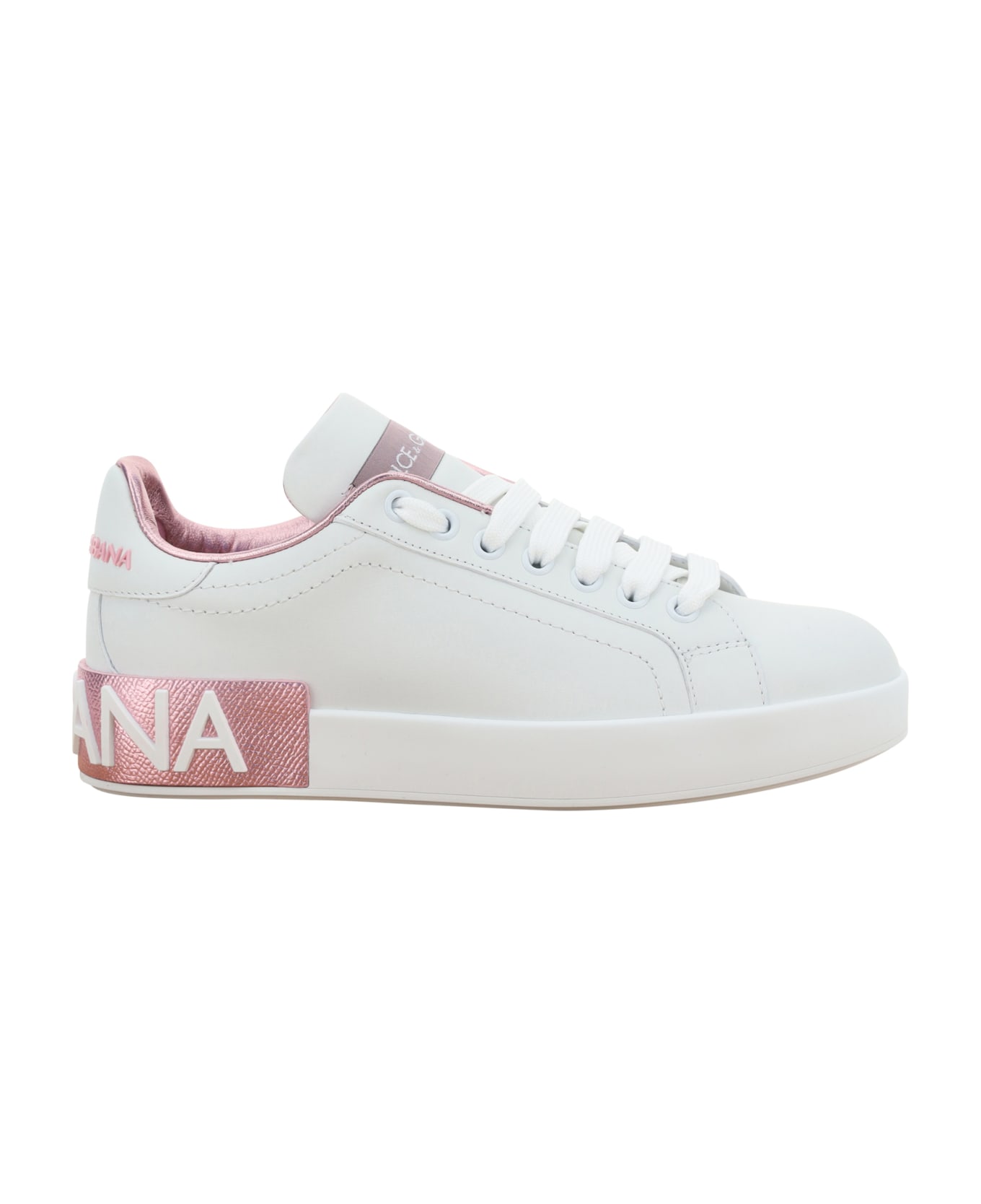 Calfskin portofino sneakers by dolce&gabbana, front lace-up closure, contrasting embroidered logo label on front tab, embossed rubber logo on heel. Composition: 100% % Calf Leather Bos Taurus, 100% % Rubber