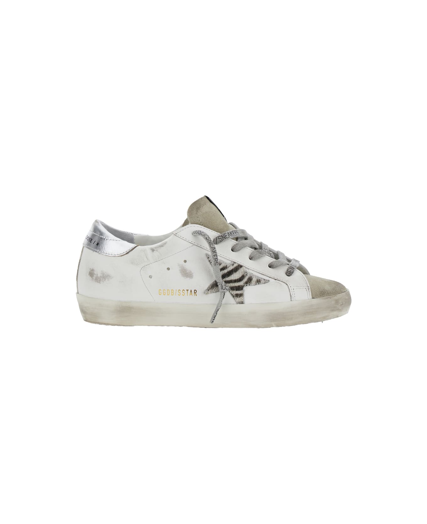 'superstar' White Low Top Sneakers With Glittered Star Patch And Laminated Heel With Logo Lettering In Leather Woman