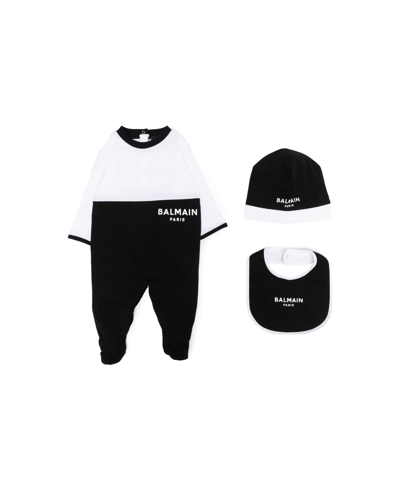 Black/white, cotton, two tone design, front logo print, round neckline, back snap button closure, long sleeves, front logo print, front logo print and back button closure. Composition: 100% Cotone