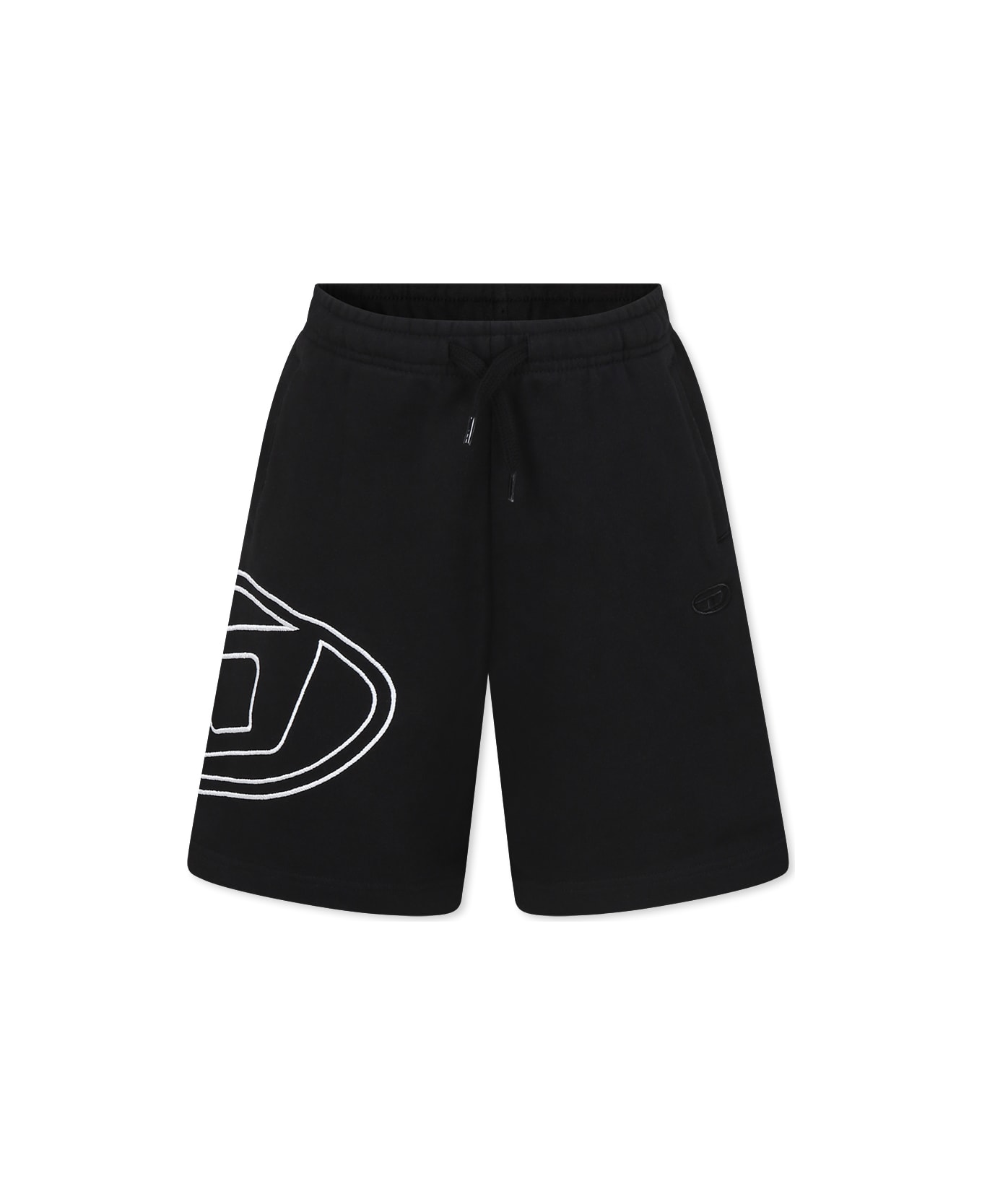 Black shorts in brushed cotton, with elasticated waist, drawstring, side pockets and patch pocket on the back. They are embellished with black logo embroidered on the front and white logo embroidered on one side.