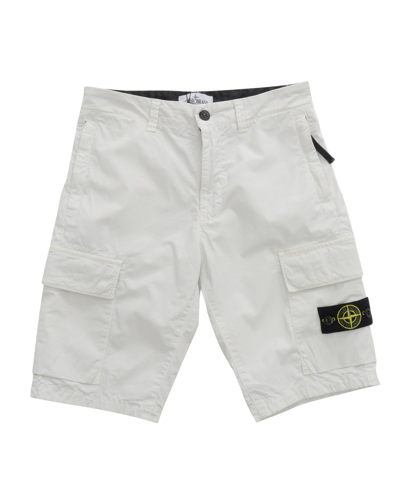 Bermuda shorts in stretch cotton, belt loops, zip and button fastening, slanted pockets with zip, large side pockets with flap, removable logo detail, welt pocket on the back