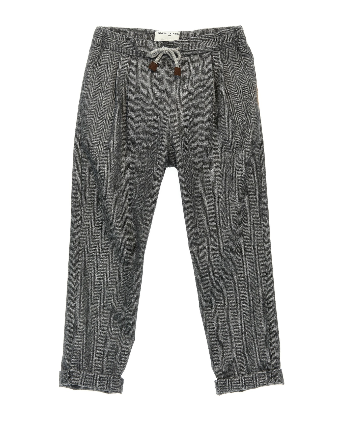 Chevron wool pants, elastic and drawstring at the waist, pockets, turned-up hem. Composition: 100% virgin wool