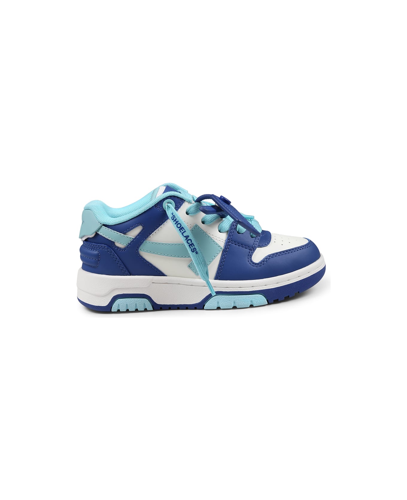 Blue sneakers with rubber sole, lace-up closure on the upper and round toe. They are embellished with iconic light blue arrow on the side and zip tye on the top.