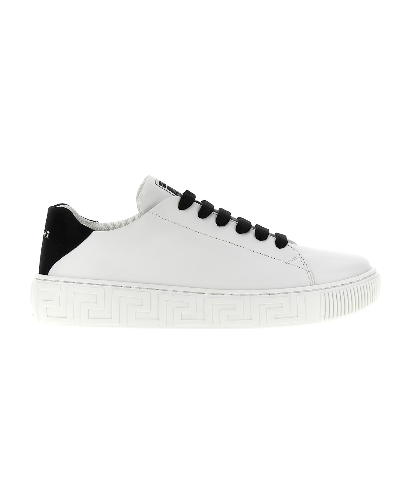 Leather lace-up sneakers with contrast suede heel tab, a rubber sole with 'Greca' pattern. Composition: 100% calf leather (bos taurus)