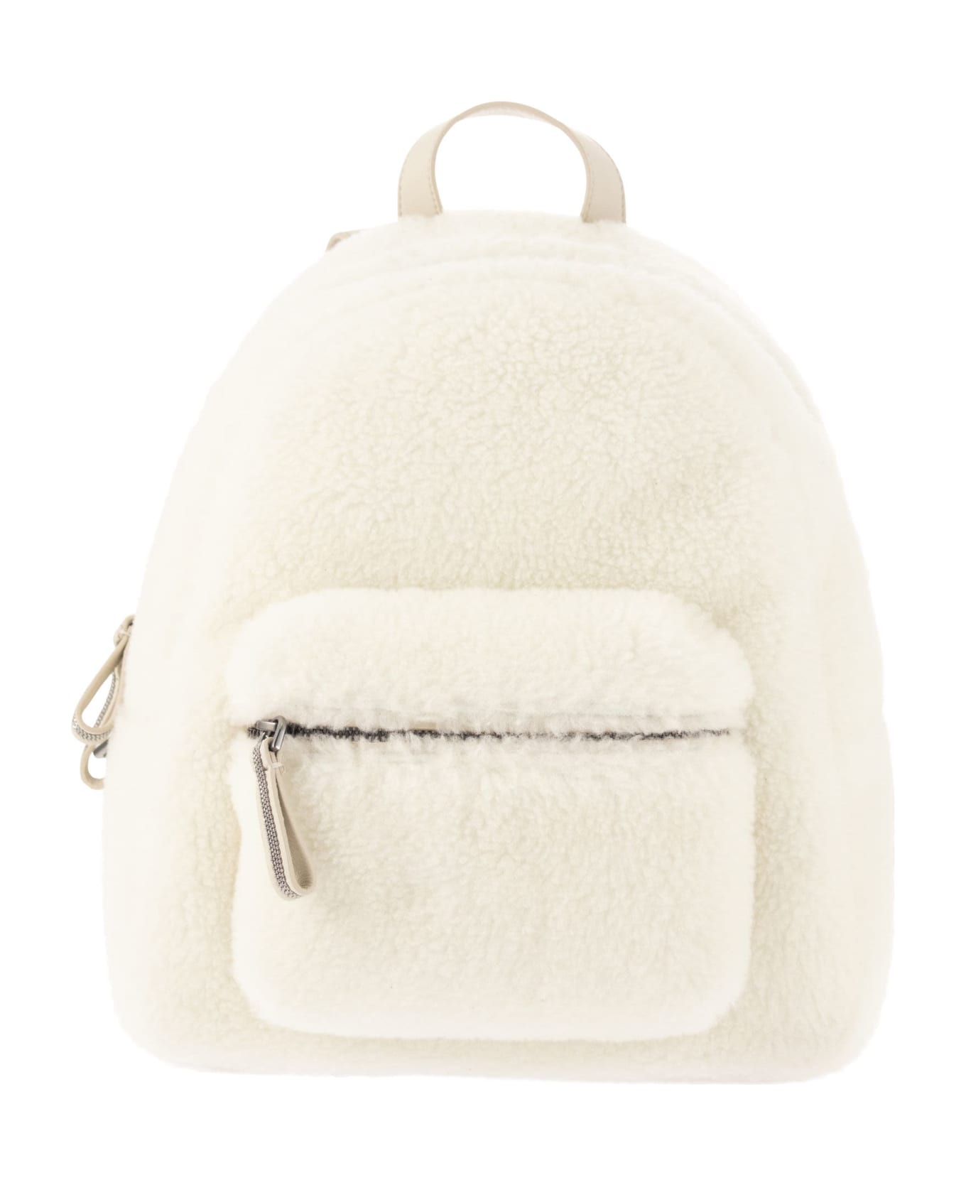 Fleecy Backpack In Virgin Wool And Cashmere With Shiny Handle
