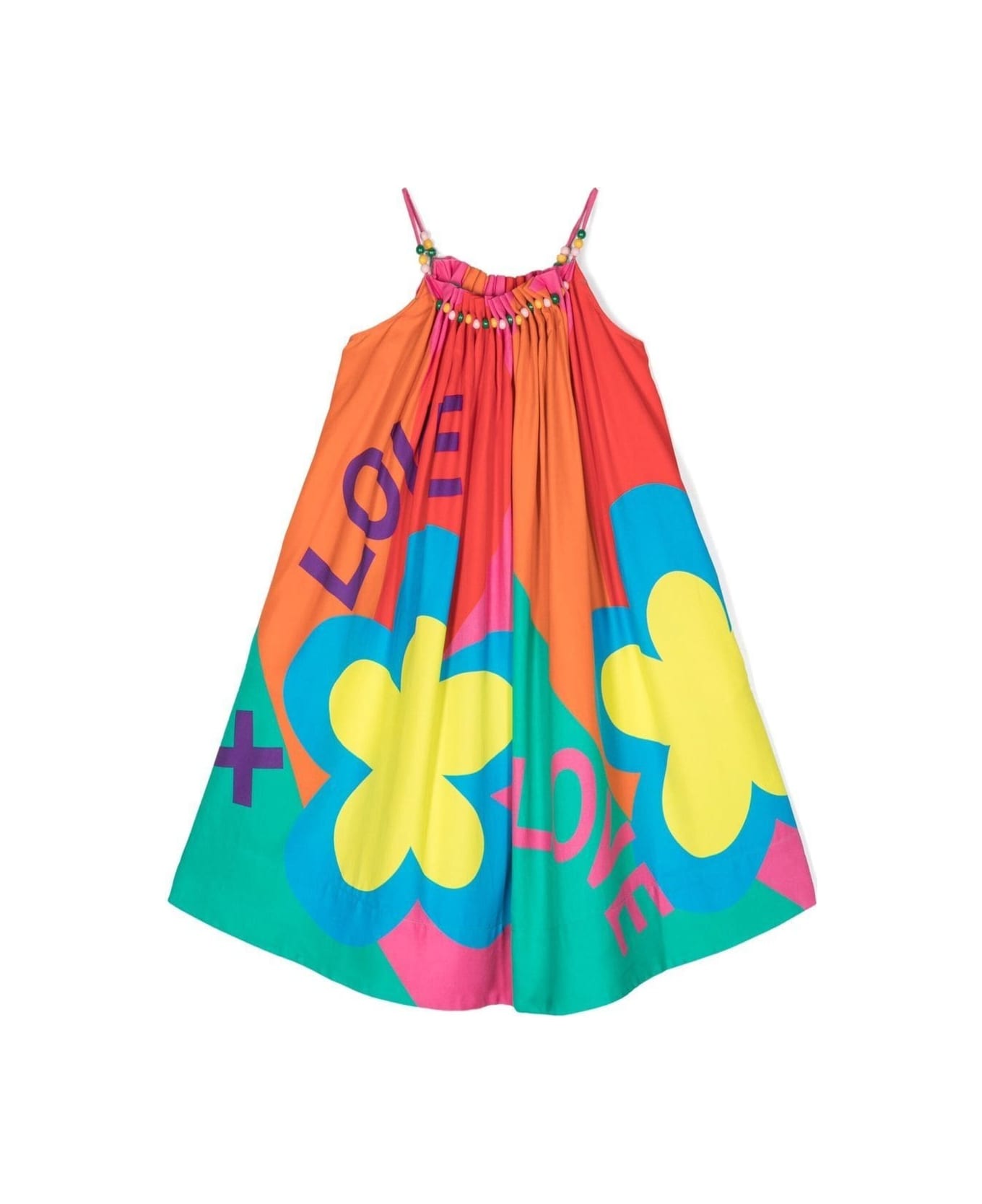 Multicolor All-over Graphic Print Dress In Cotton Girl