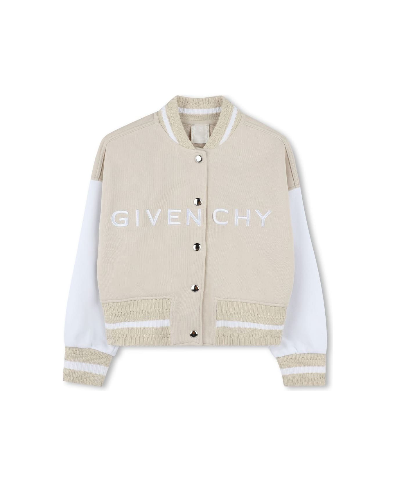Giubbino con logo beige/bianco