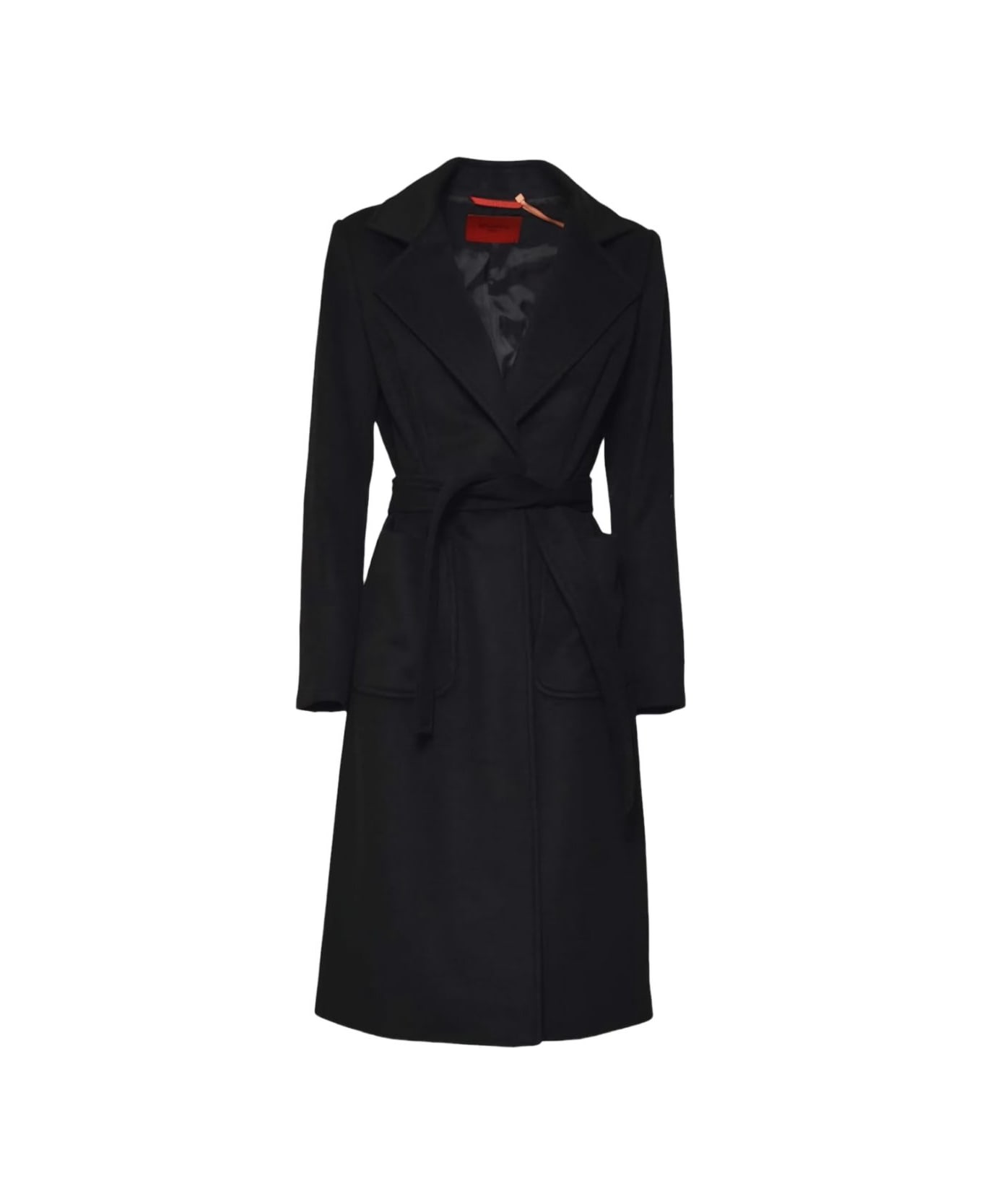 Features Black Wool Notch lapels Long sleeves Slit hems Removable belt Two front patch pockets Double vent Straight hem Composition 100% wool