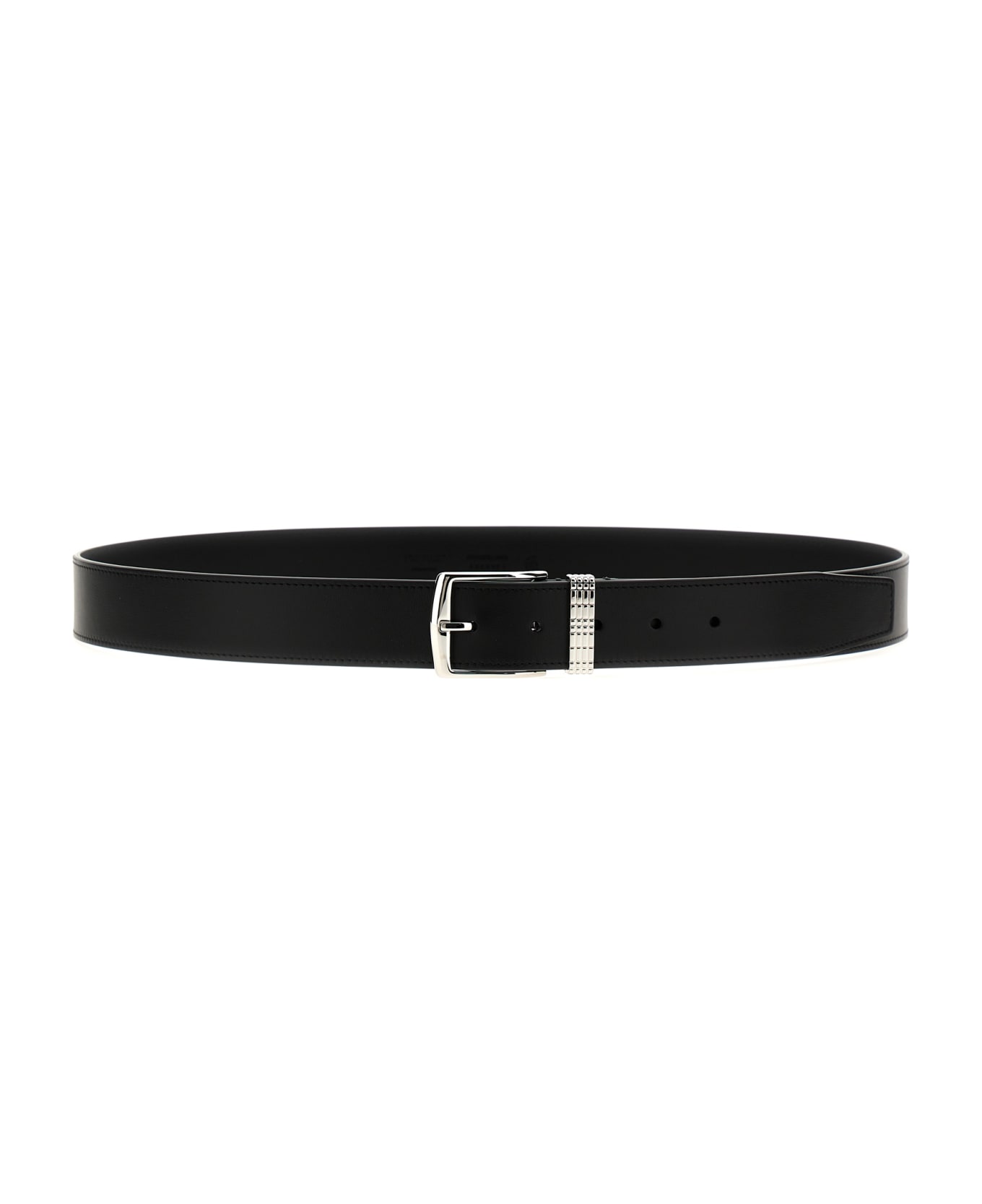 Leather belt with palladium-plated buckle and engraved Check pattern loop. Composition: 100% calfskin leather (Bos Taurus)