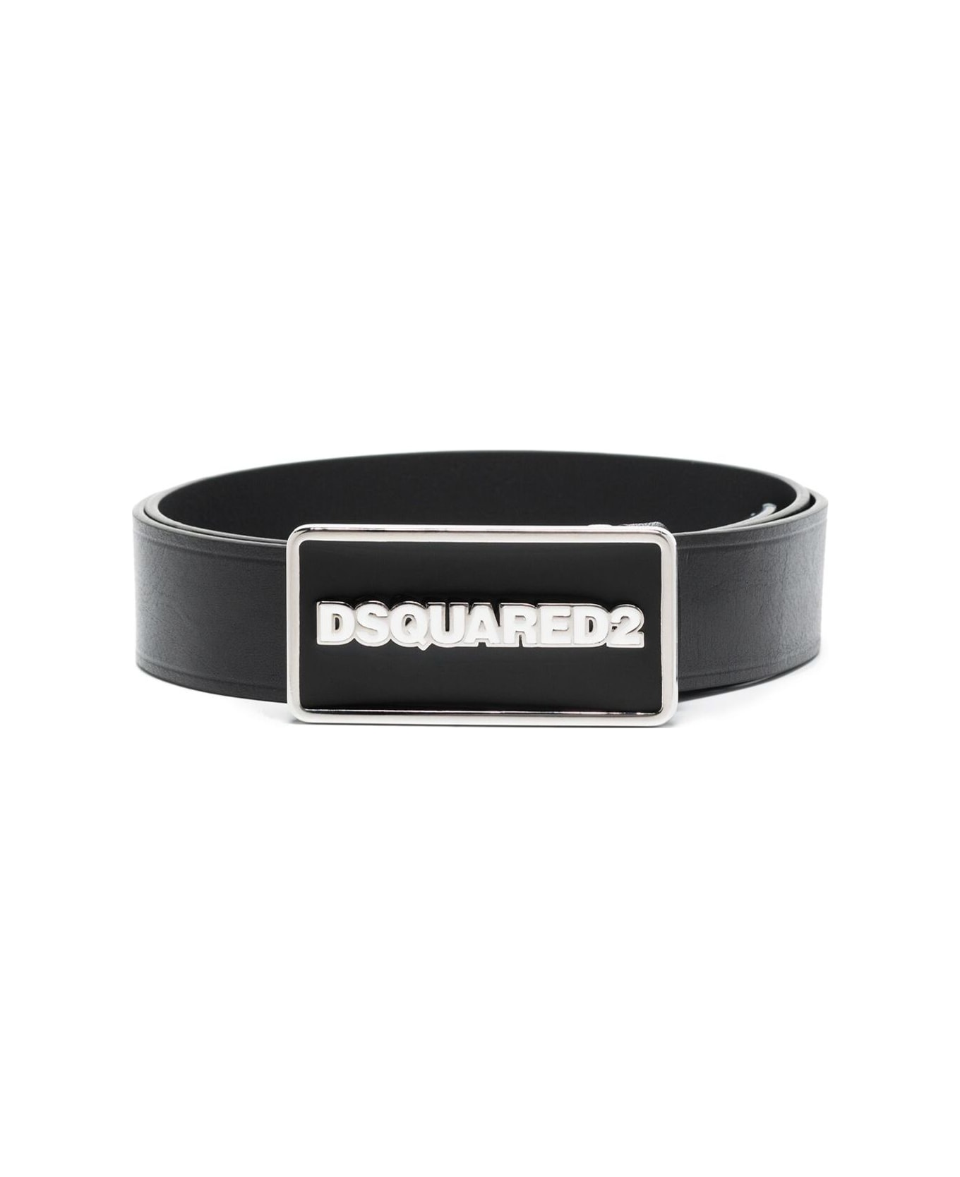 Belt Logo buckle Punched holes Adjustable fit Black Leather