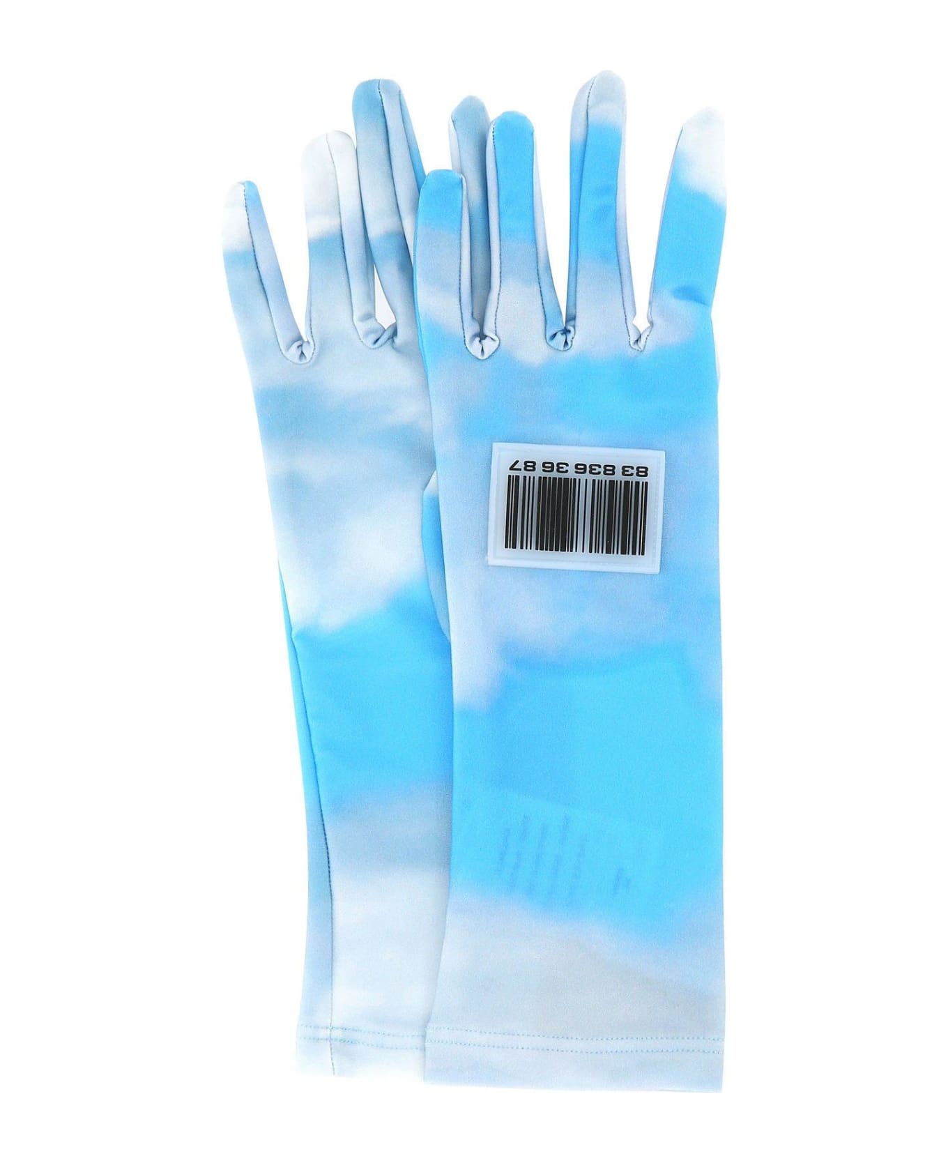 Gloves realized in stretch nylon characterized by peculiar print on the entire surface enriched by rubberized logoed patch at the front.