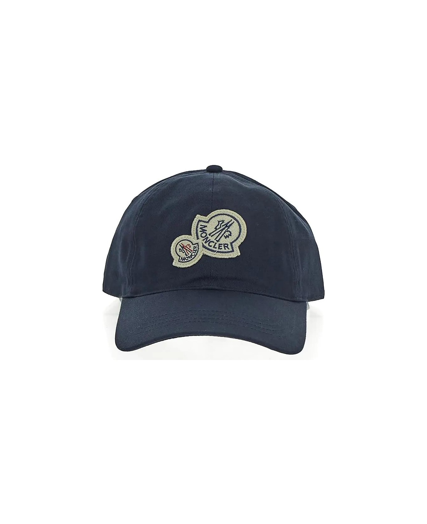 Baseball Cap from Moncler Moncler baseball cap in navy blue cotton with two patch logos on the front and adjustable back strap.