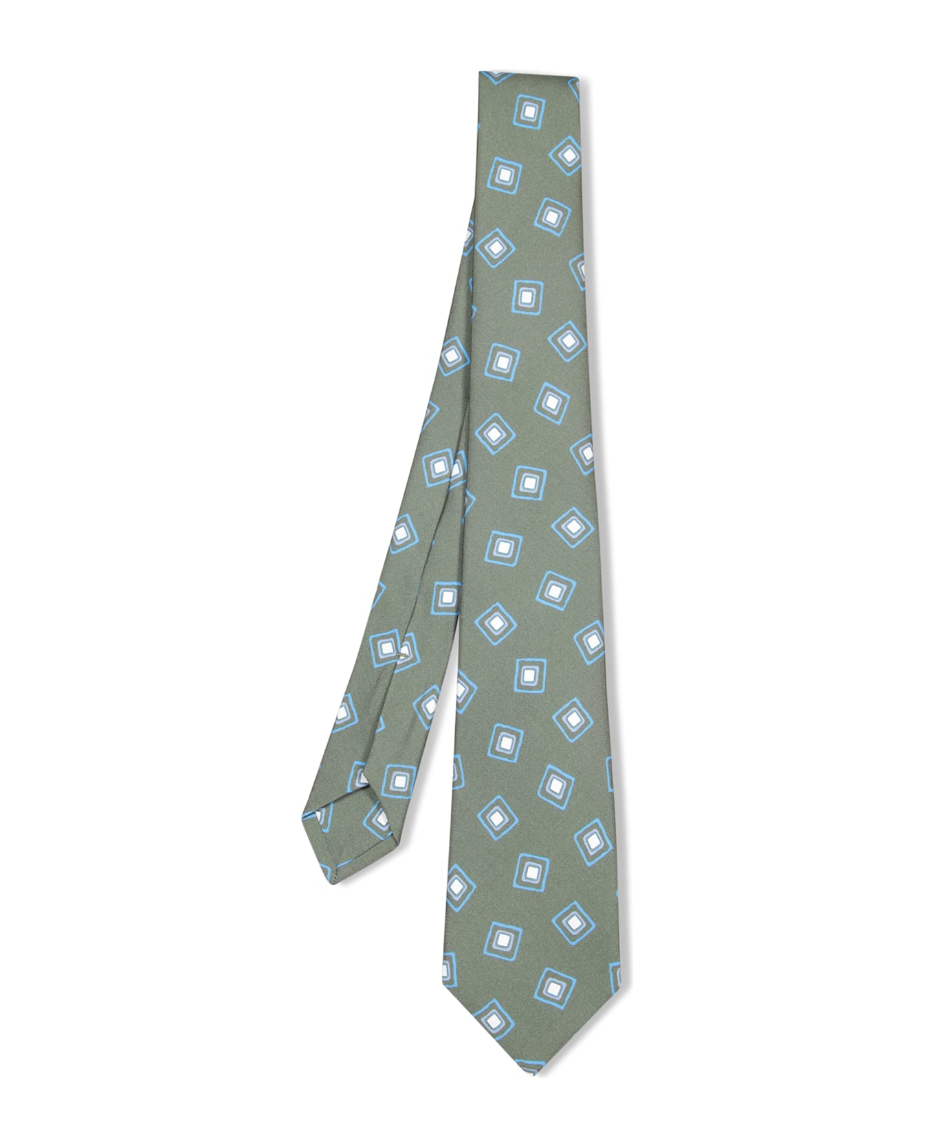 This elegant Kiton tie boasts a refined geometric design on a green base, highlighting the essence of understated luxury. Perfect for stylishly enhancing any formal attire. Composition: 100% Silk