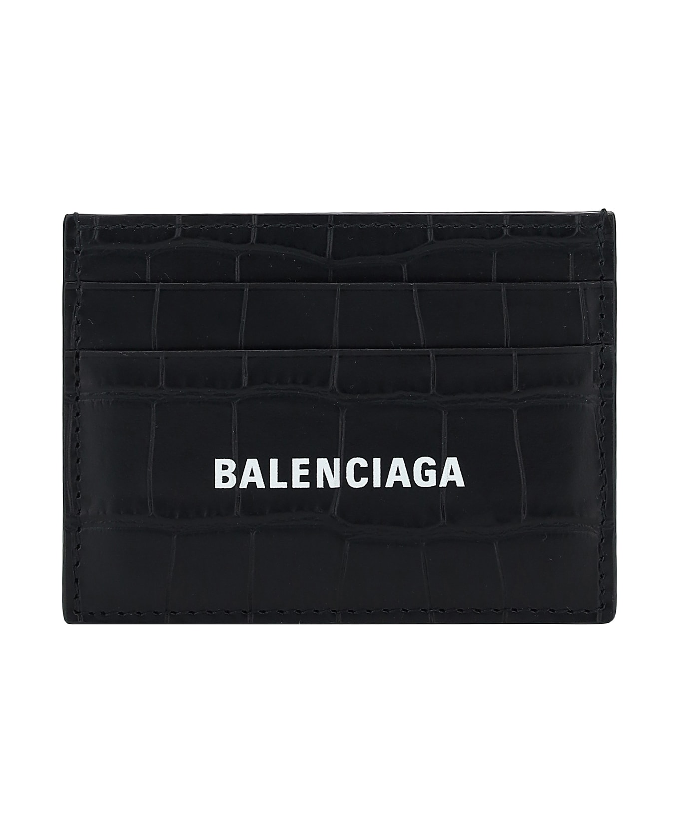 Calfskin card holder by balenciaga, croc-effect leather design, card slots on front and back, contrasting iconic brand monogram on front. Composition: 100% % Calf Leather Bos Taurus