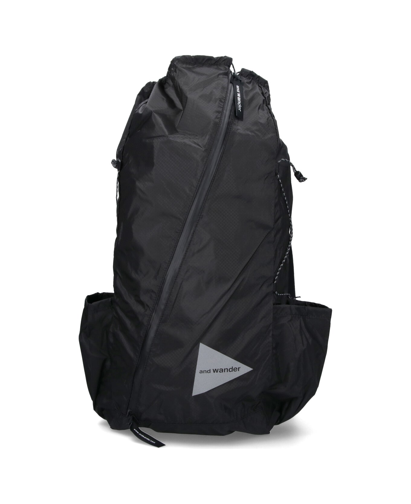 And Wander '98 Sil Daypack' backpack in black fabric with top handle, adjustable shoulder straps, drawstring closure and maxi zip on the front, two side pockets, contrasting logo print on the front, inner zip pocket, main inner compartment.