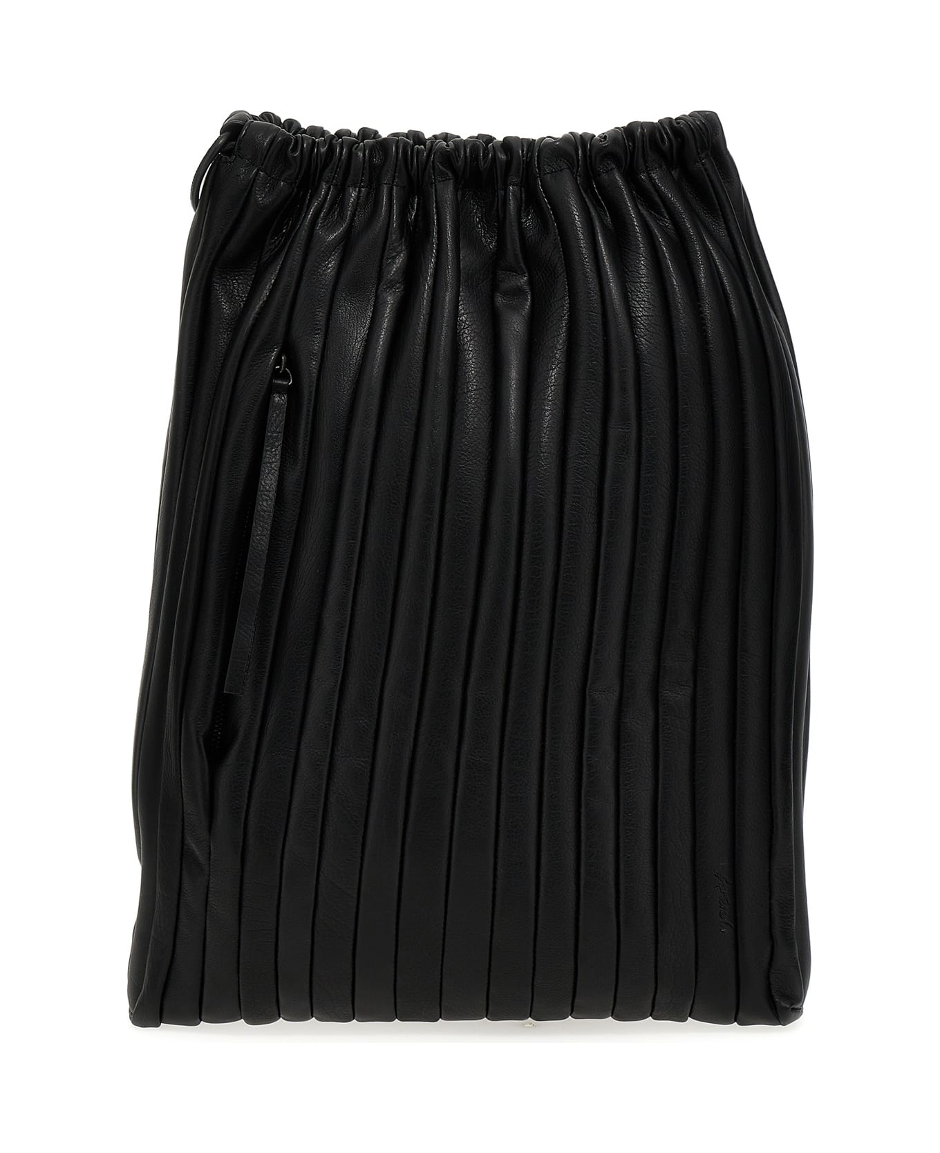 Arriccia' backpack in pleated leather with drawstring closure and thin shoulder straps.