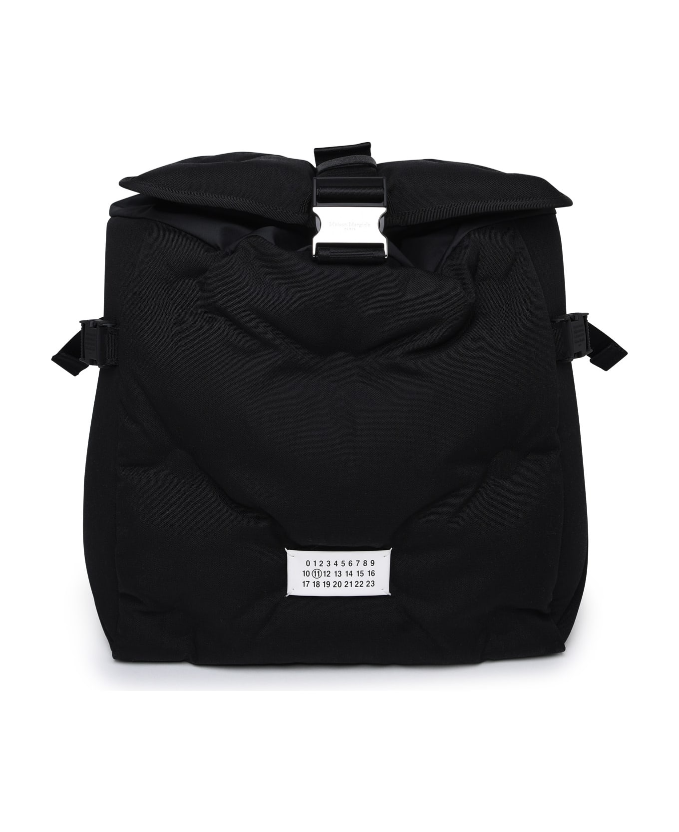 Quilted effect made with thermal sealing, made of cordura fabric with calf leather inserts and shiny metal details, top handle with leather insert, top flap, buckle closure and embossed logo, hidden closure with adjustable drawstring, label with contrasting logo print applied on the front, adjustable straps on the sides, adjustable waist closure,