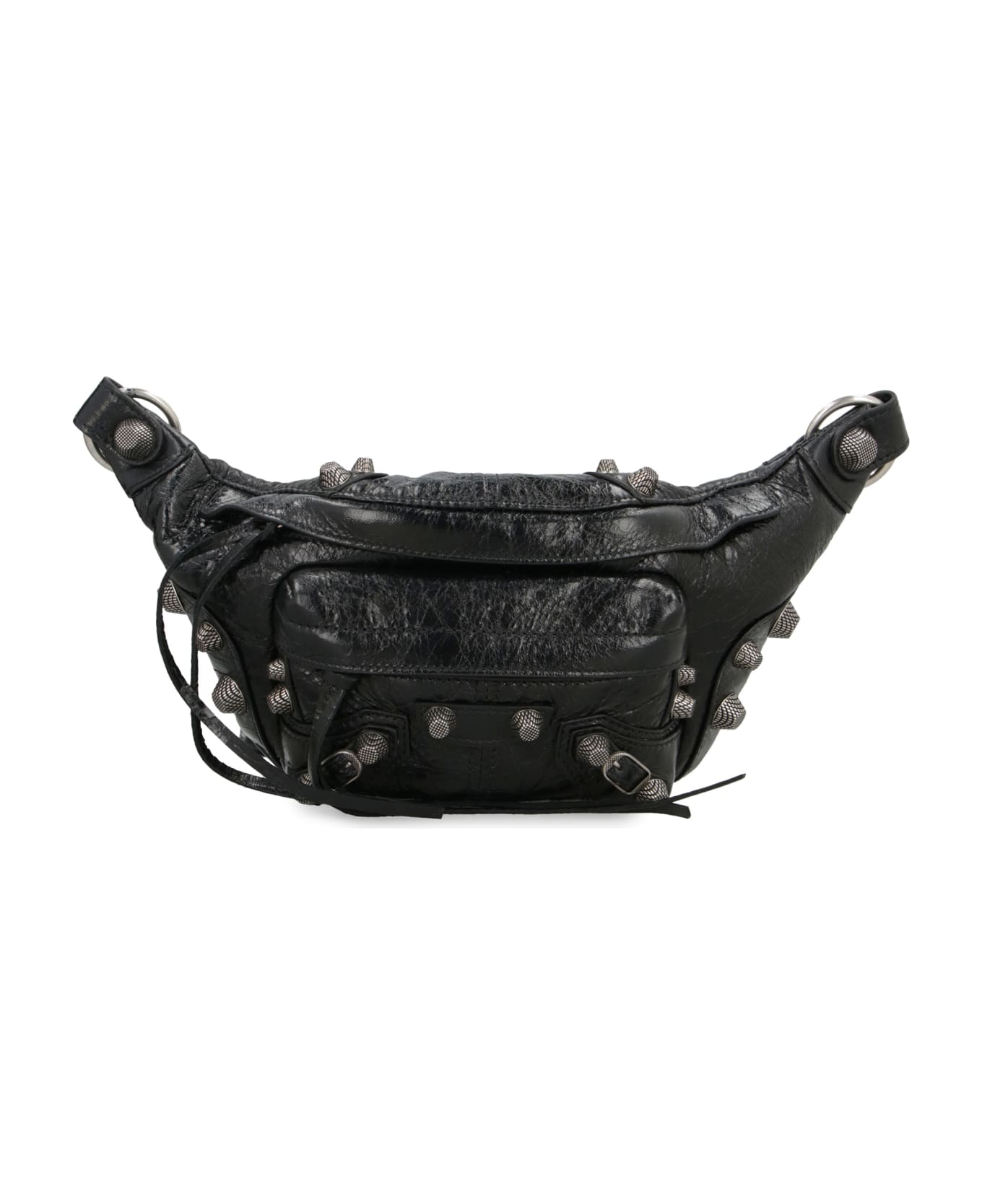 Lamb leather item decorative front metal studs and buckles top zippered closure zippered front pocket back zippered pocket fabric lining adjustable belt with buckle silver-tone metal hardware width: 26 cm height: 13 cm depth: 8 cm 100% lamb Composition: 100% % Lamb