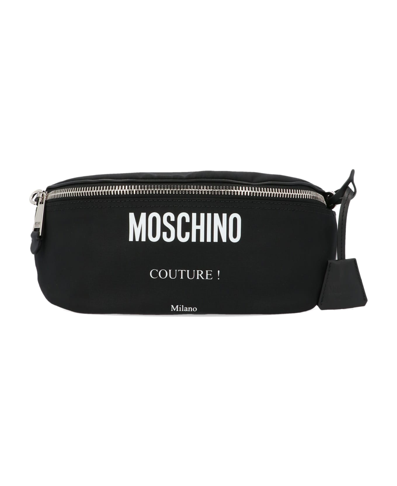 Moschino logo print fabric belt bag with zip closure and shoulder strap. Composition: 100% polyamide