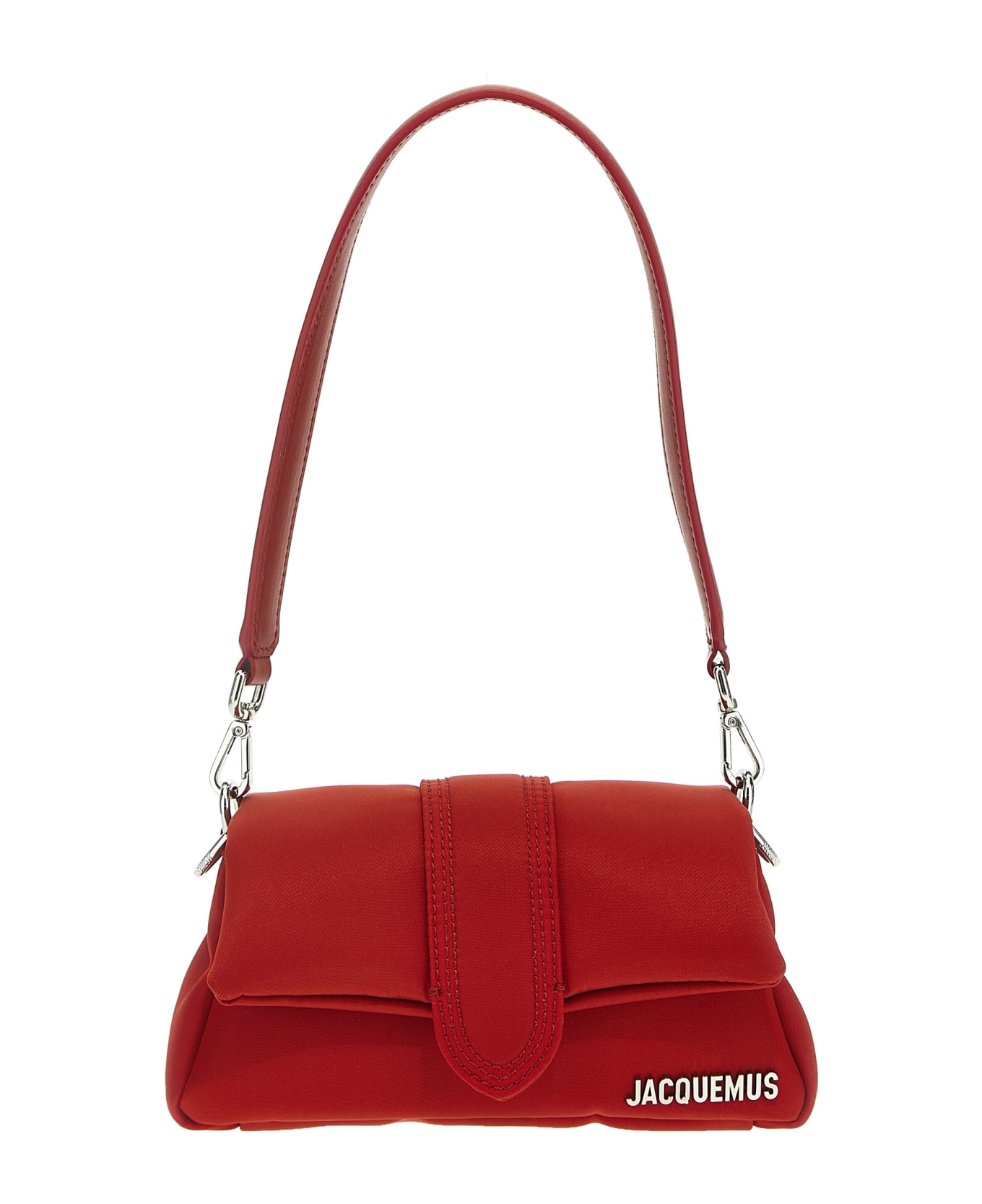 'Le Petit Bambimou' nylon shoulder bag with magnetic closure, front logo appliqué, removable short handle, and removable long shoulder strap. Composition: 90% polyamide 10% acrylic