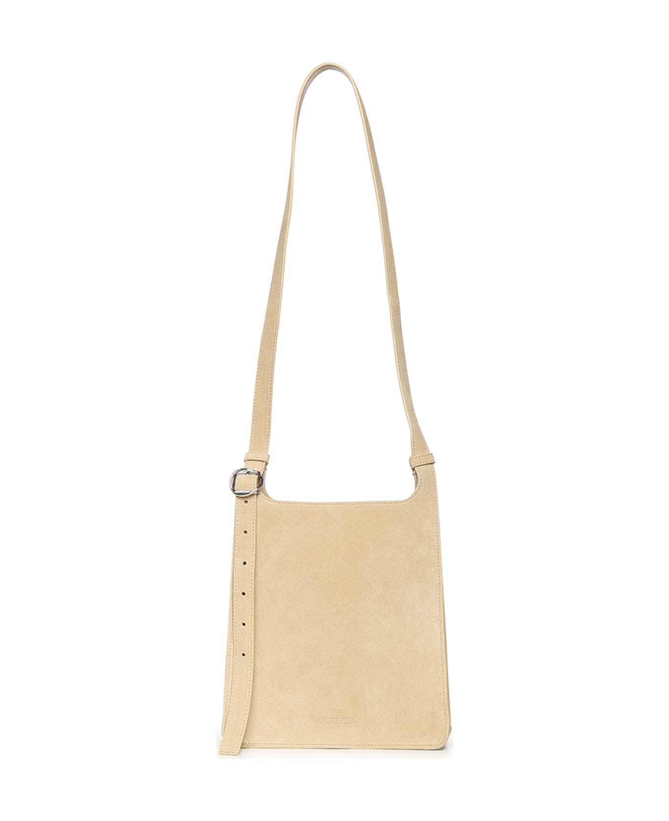 - Made of suede - Adjustable shoulder strap - Inside pocket -?? Logo on the back - Dimensions: 22 x 24 x 5. 5 cm - Made in Italy - Color: Beige