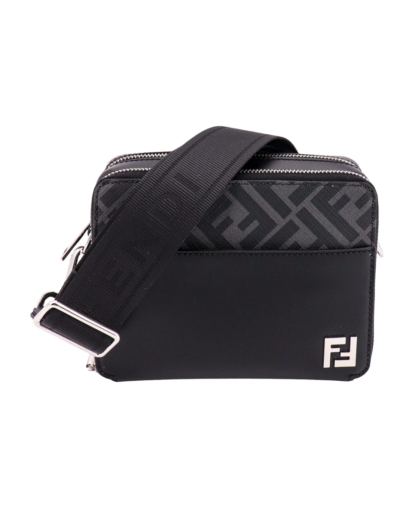 Leather shoulder bag with FF insert - Double Compartments With Zip Closure - Removable And Adjustable Fabric Shoulder Strap - Two Internal Compartments And Three Compartments For Credit Cards - Made In Italy - Leather