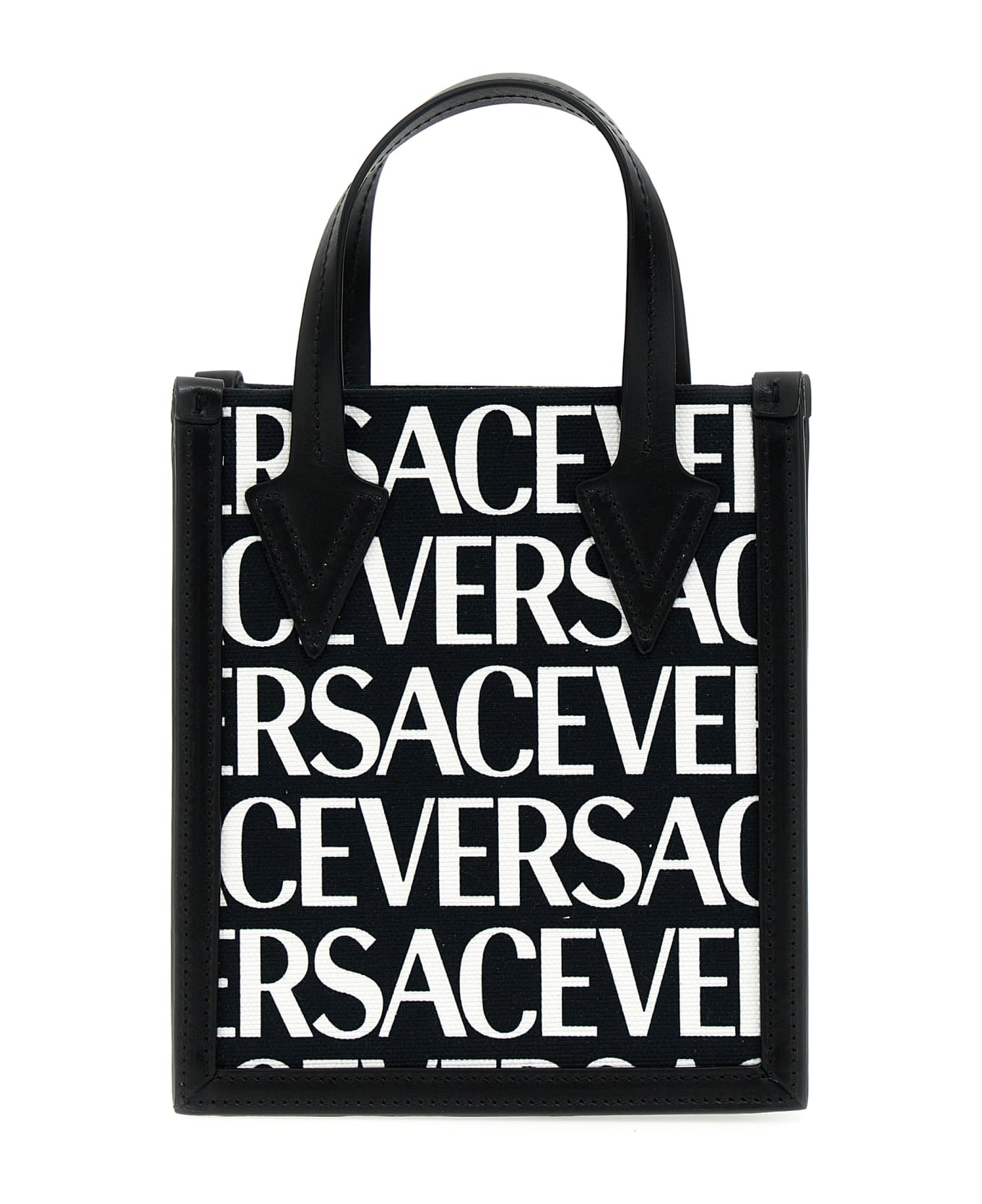 Canvas shopping bag with 'Versace All Over' logo print, double top handle and awith adjustable shoulder strap. Composition: 100% cotton