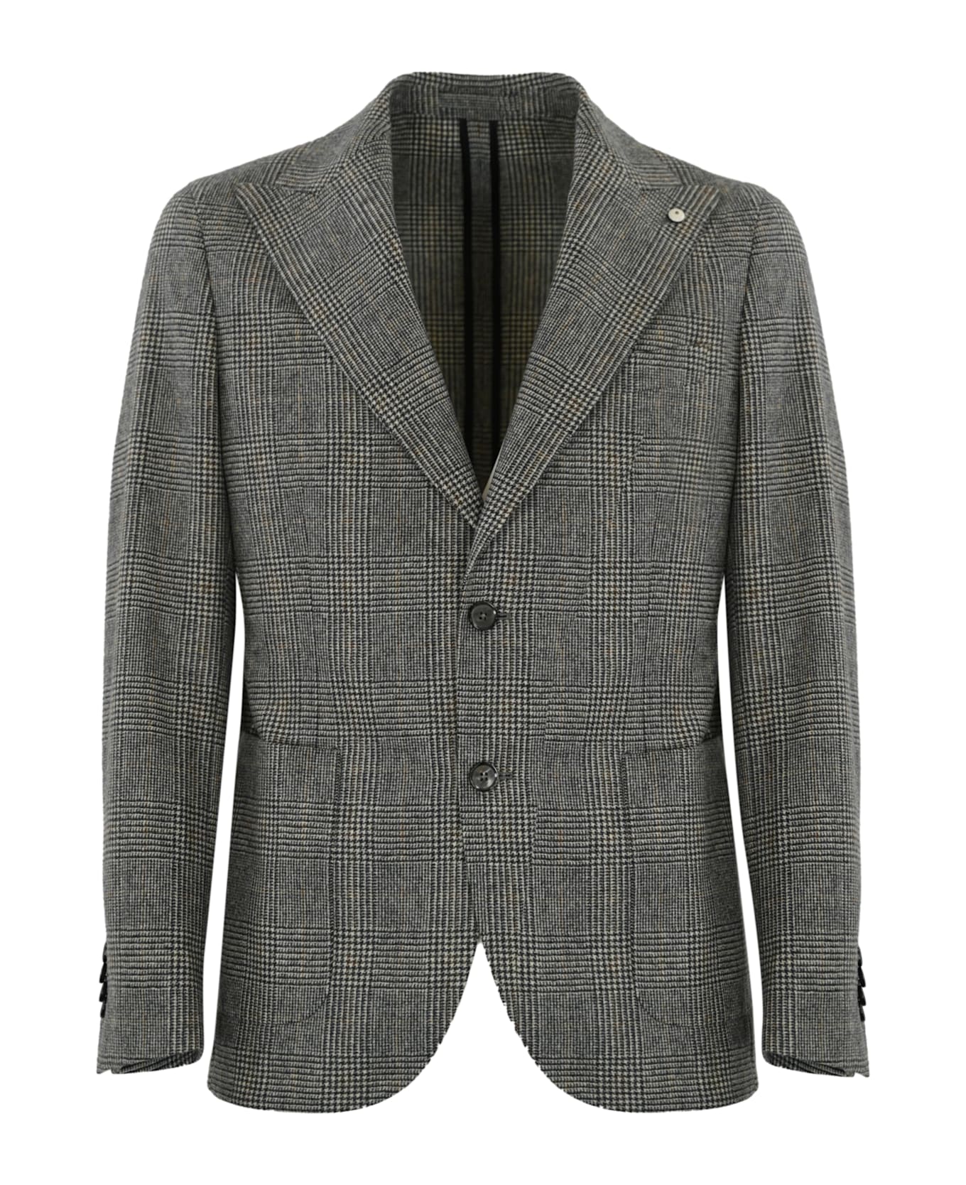 men's wool jacket: wool long sleeves v-neck with lapels single-breasted front closure with buttons small pocket on the heart side front pockets cuffs with buttons prince of wales design regular fit composition: 100% virgin wool