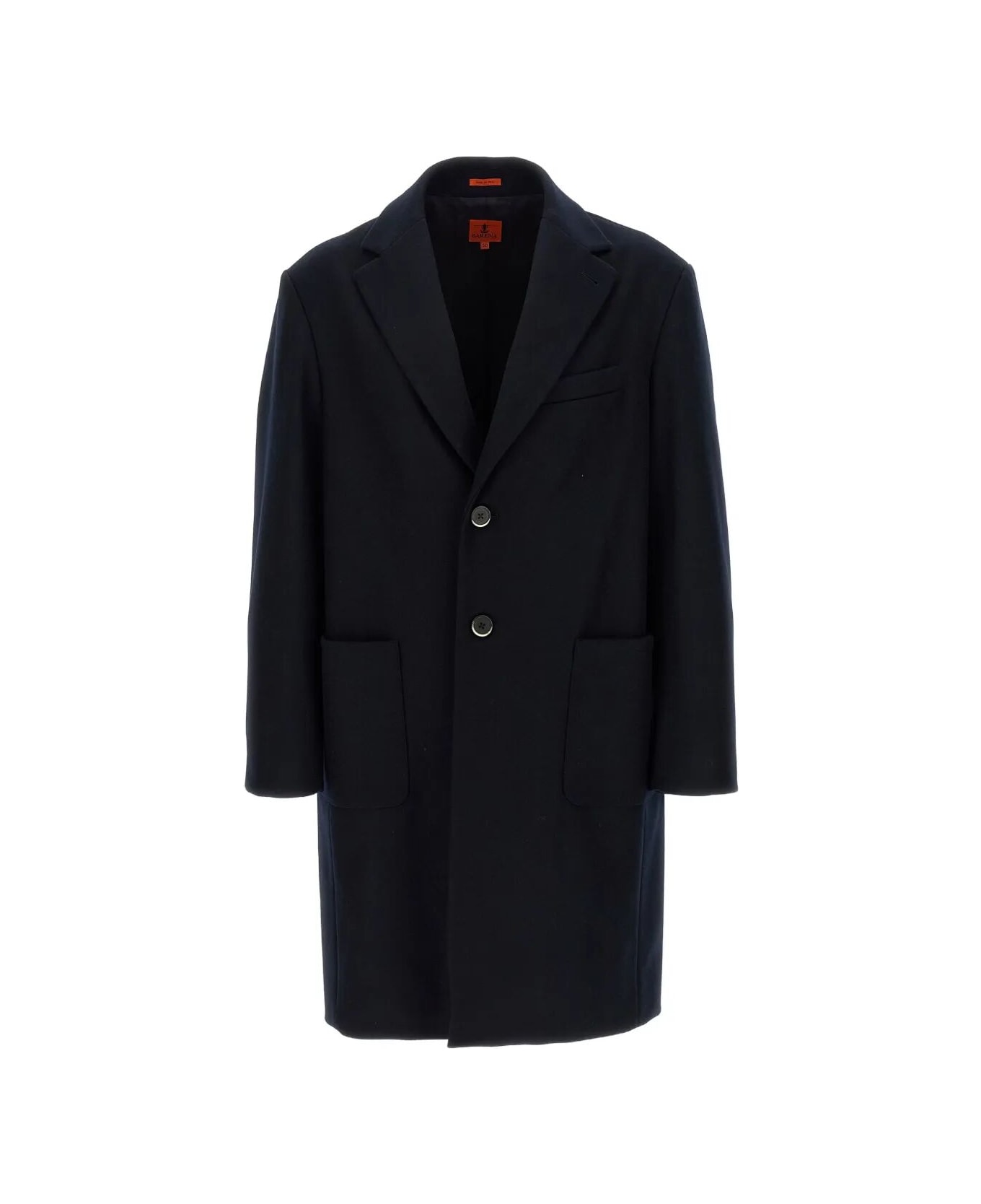 An elegant navy coat crafted from a wool-nylon blend, fully lined for warmth without bulk. Features include a straight cut with classic lapels, a button-front closure, and a length reaching below the knee ideal for both formal occasions and urban wear. Front pockets and an internal pocket enhance practicality. A versatile piece marrying Italian refinement with everyday comfort.
