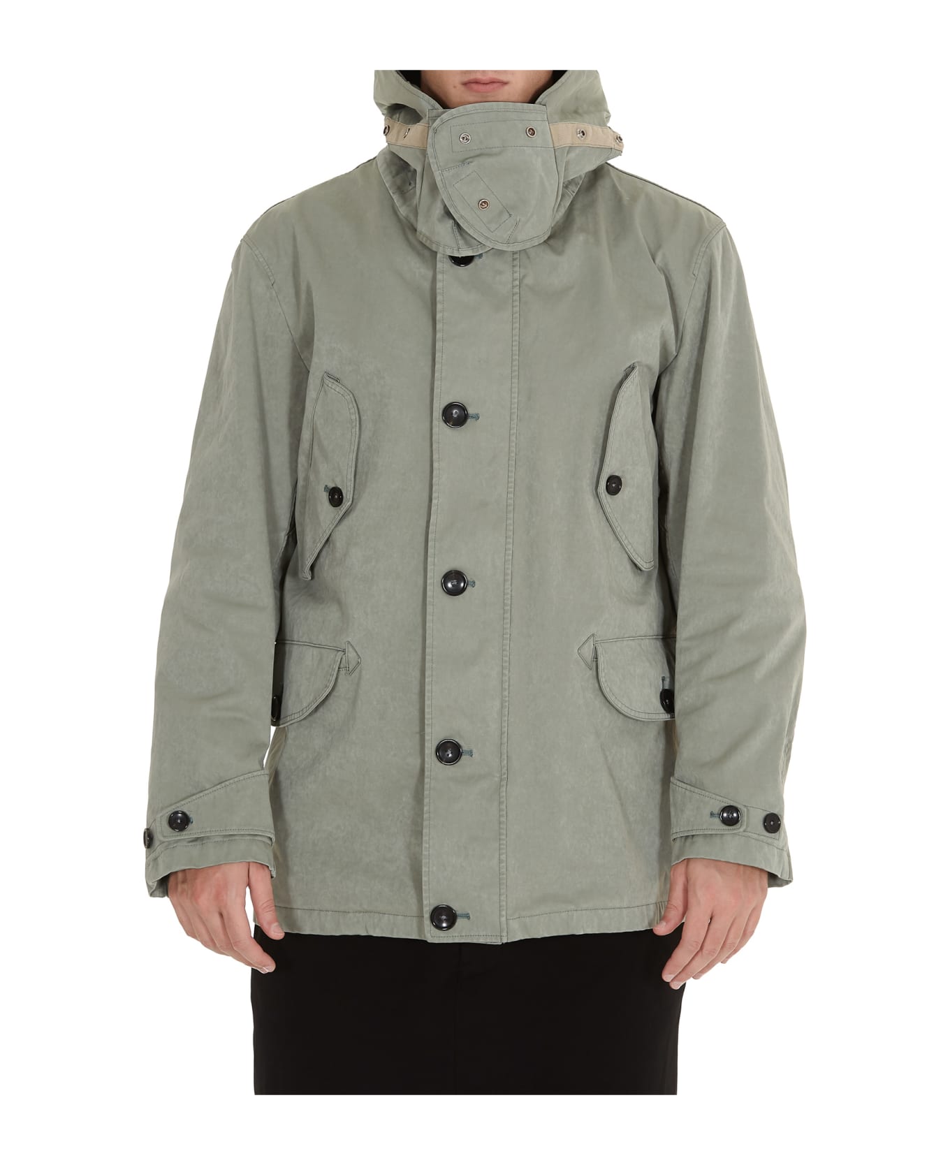 • man parka, zip and button closure in the front, hood