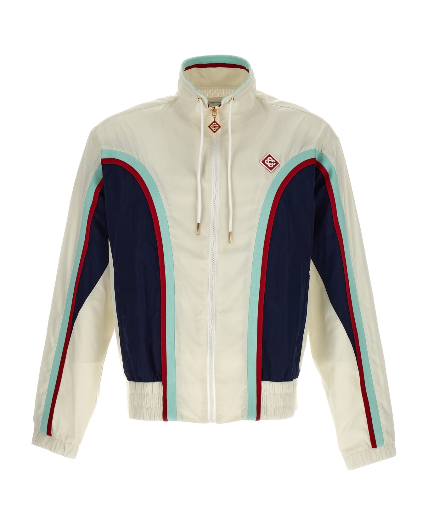 'Side pannel' jacket in technical fabric with contrast side bands, zip closure, elastic waistband and cuffs, drawstring at the neck. Composition: 100% polyester