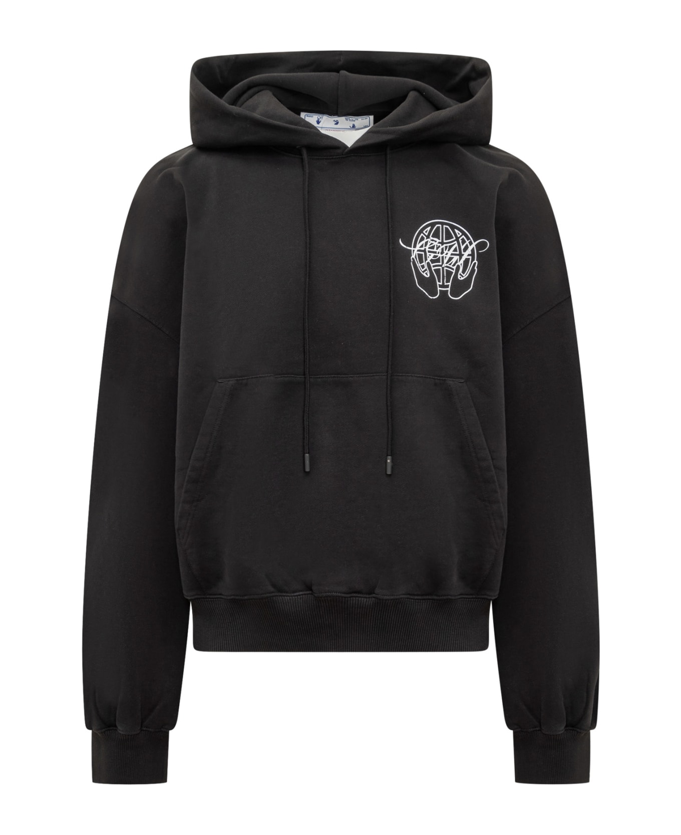 Hoodie. Drawstring hood. Ribbed hem and cuffs. Hook pocket on the front. Hand print on the front. Maxi logo on the back. Composition: 100% Cotton