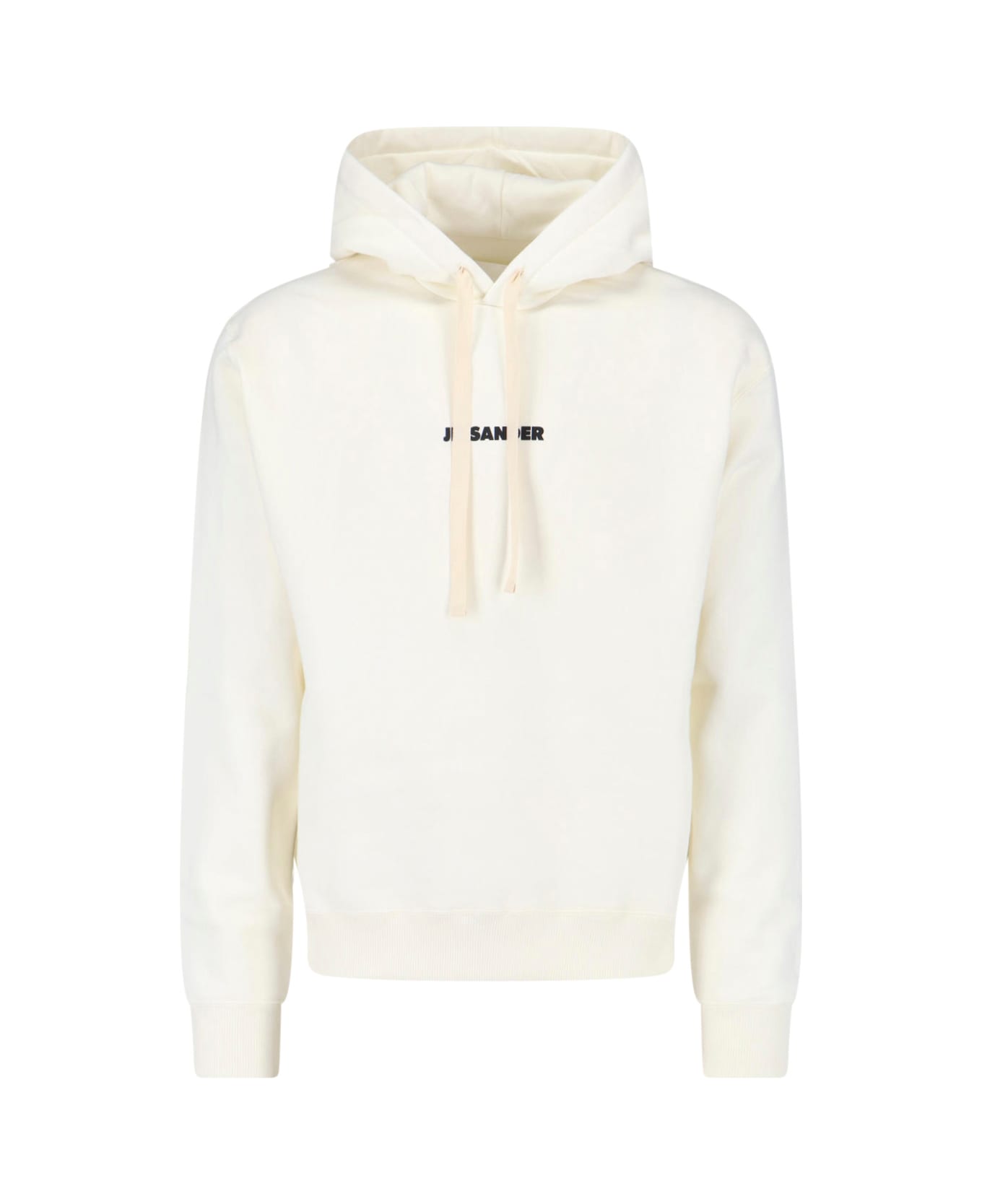 Jil Sander white cotton logo sweatshirt with hood, long sleeves, contrast logo at the front. Composition: 100% Cotton