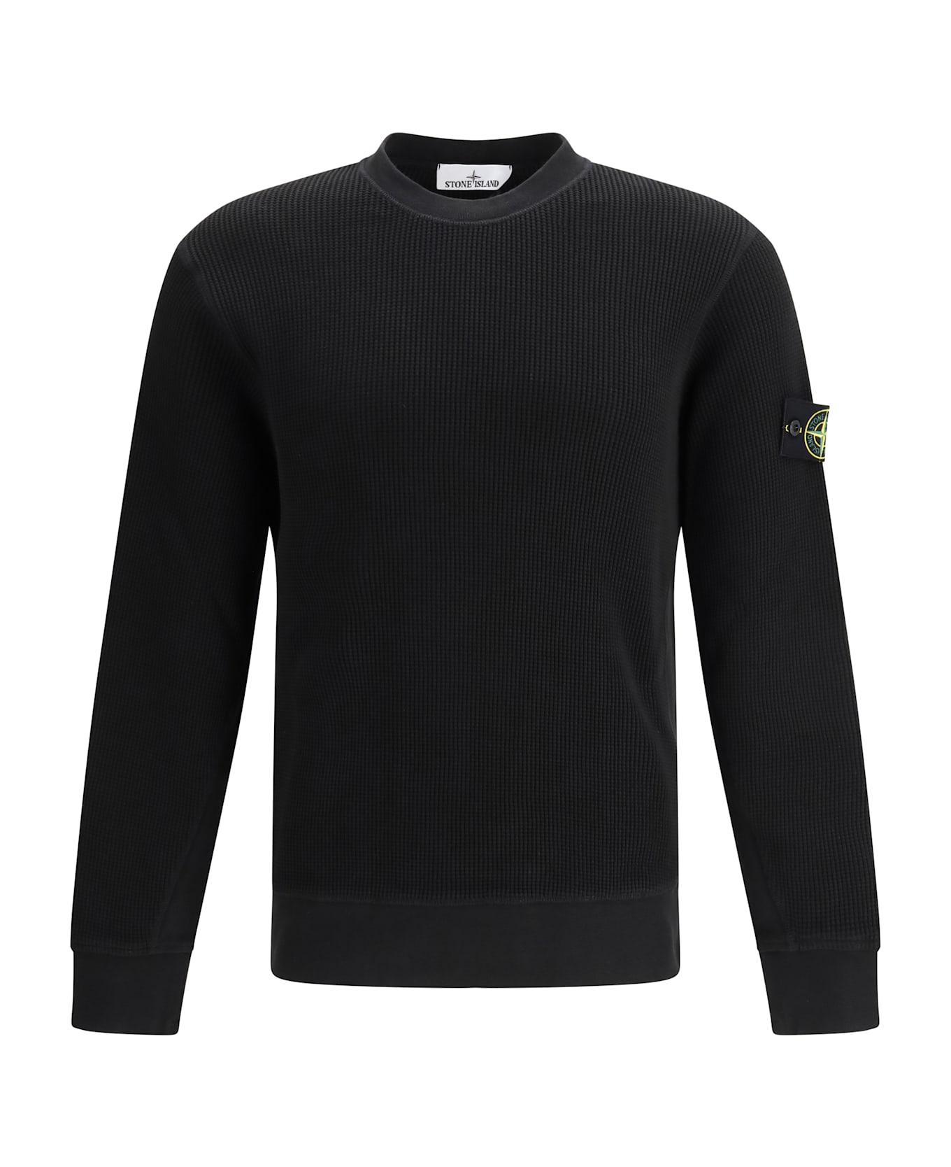 The long-sleeved knitted sweatshirt by stone island, defined by a clean, understated design. the round neckline and long sleeves create a versatile silhouette suited to everyday wear. ribbed detailing at the neck, cuffs and hem adds subtle structure and comfort, expressing the brand s signature balance between functionality and refined craftsmanship.