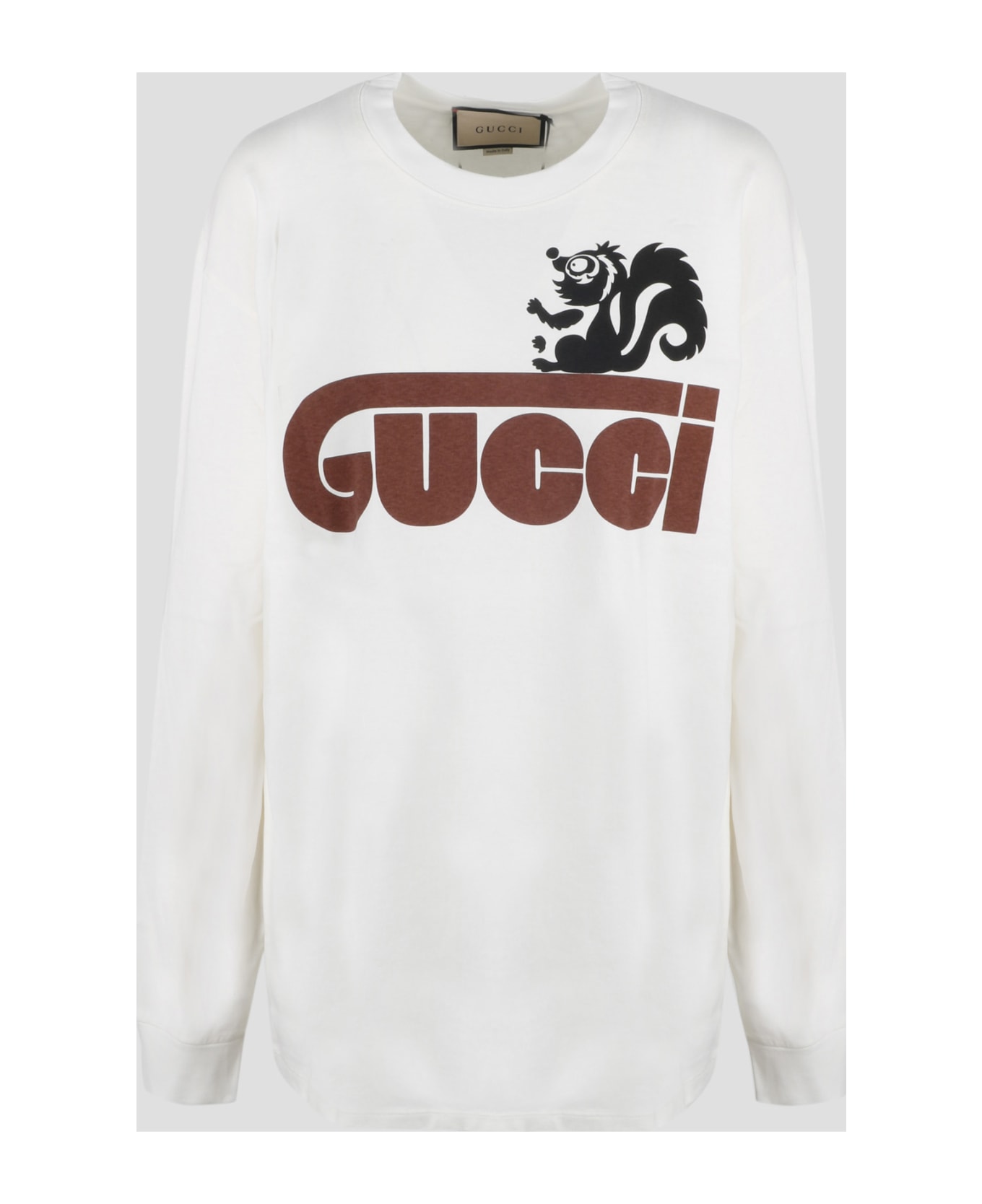 Gucci cotton jersey t-shirt with retro Gucci print with skunk. - SS23 - Oversized fit - Ribbed crewneck - Front printed - Long sleeve - Made in Italy - 100% Cotton