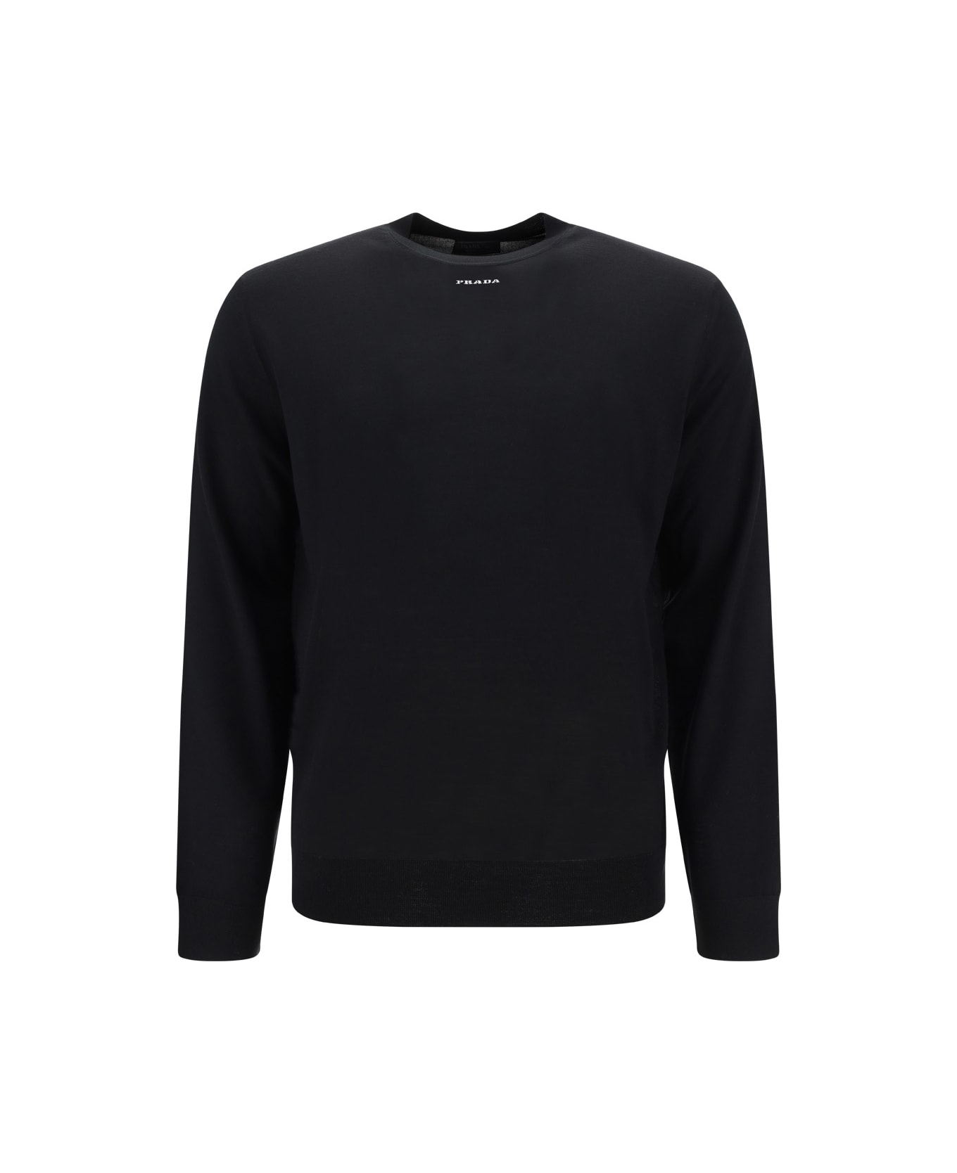 Fleece wool sweater by prada, ribbed crew neck, ribbed hem, ribbed cuffs, monochrome pattern, iconic brand monogram embroidered in contrasting color on front, regular fit. Composition: 100% % Fleece Wool