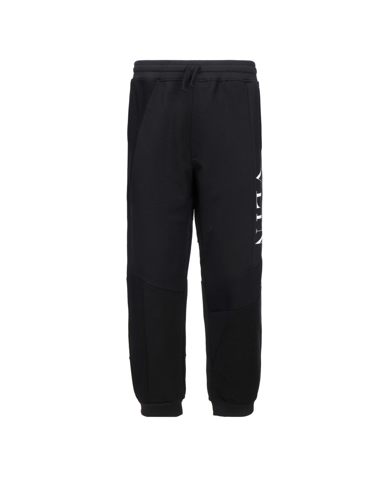 Cotton Sweatpants by Valentino, adjustable drawstring waistband, two welt pockets on front, elastic bottom cuffs, contrast logo printed on one side, slouchy fit. Composition: 94% Cotton, 6% Polyamide
