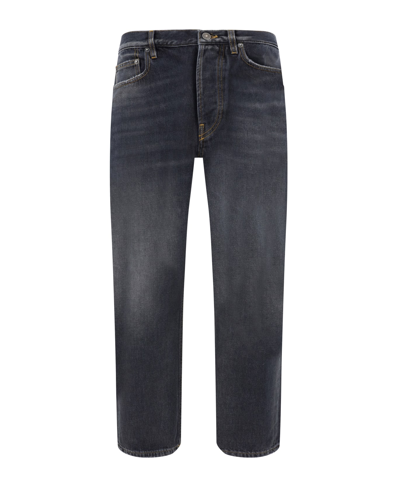 Cotton cory skate jeans by golden goose, five-pocket straight style, front button closure, waistband loops, iconic fabric patch with contrasting embroidered brand signature and applique at back. Composition: 100% % Cotton