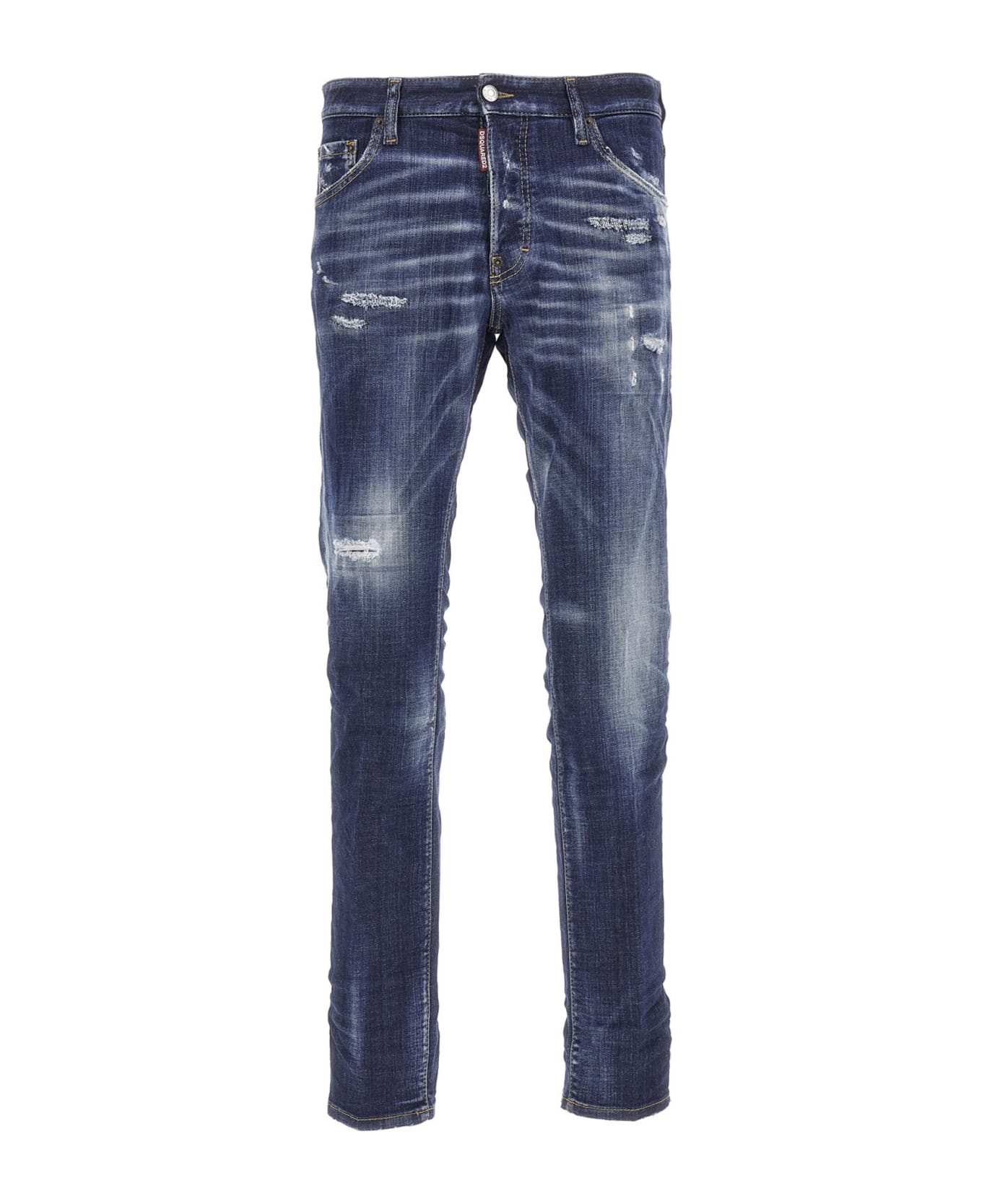 Cool guy' cotton denim jeans featuring used-effect details, a button closure, five pockets, and a canvas logo tag.