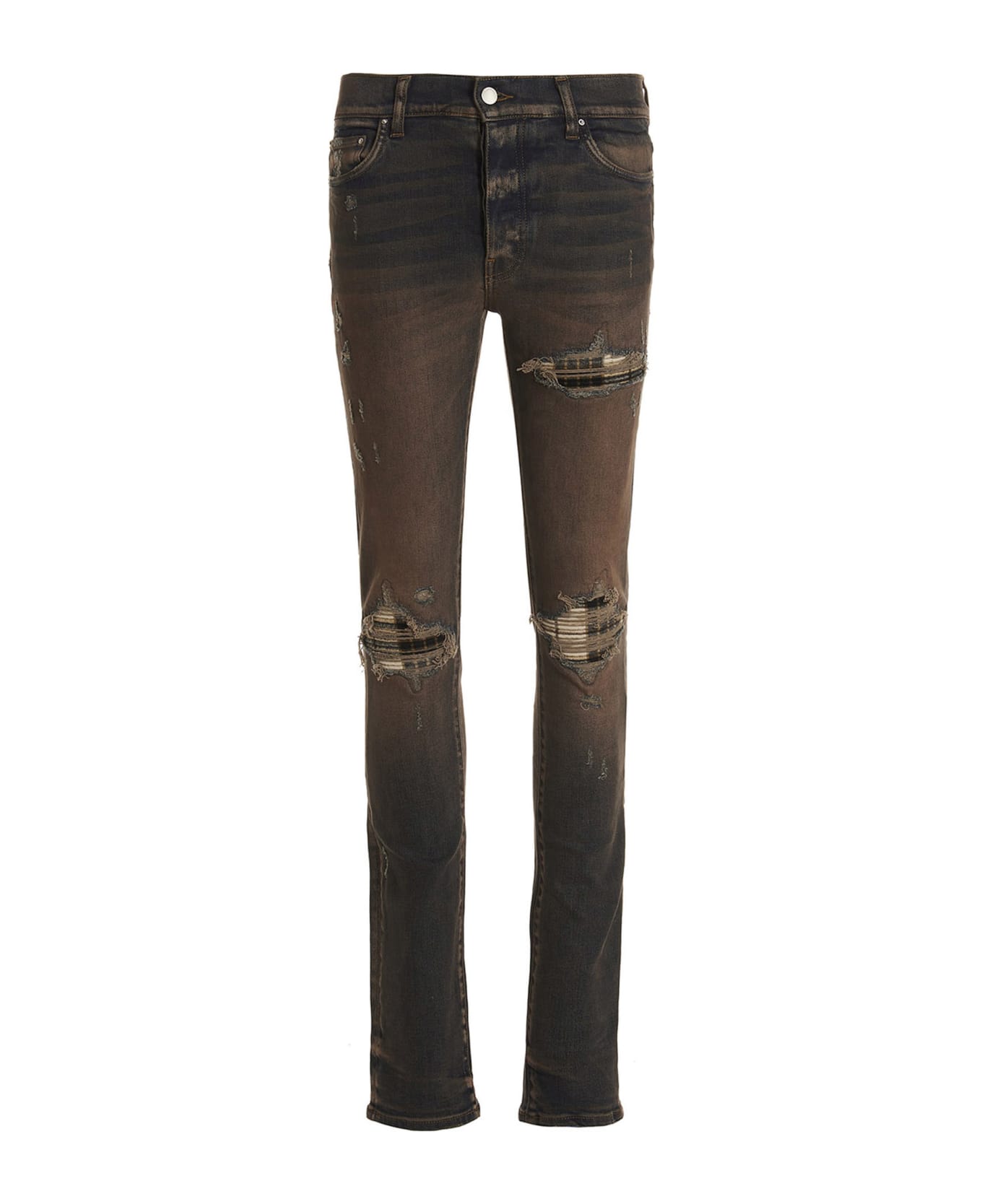 'Plaid MX1 stretch cotton denim jeans with used and destroyed effect details, contrasting patches, a button closure, five pockets and a leather logo tag.